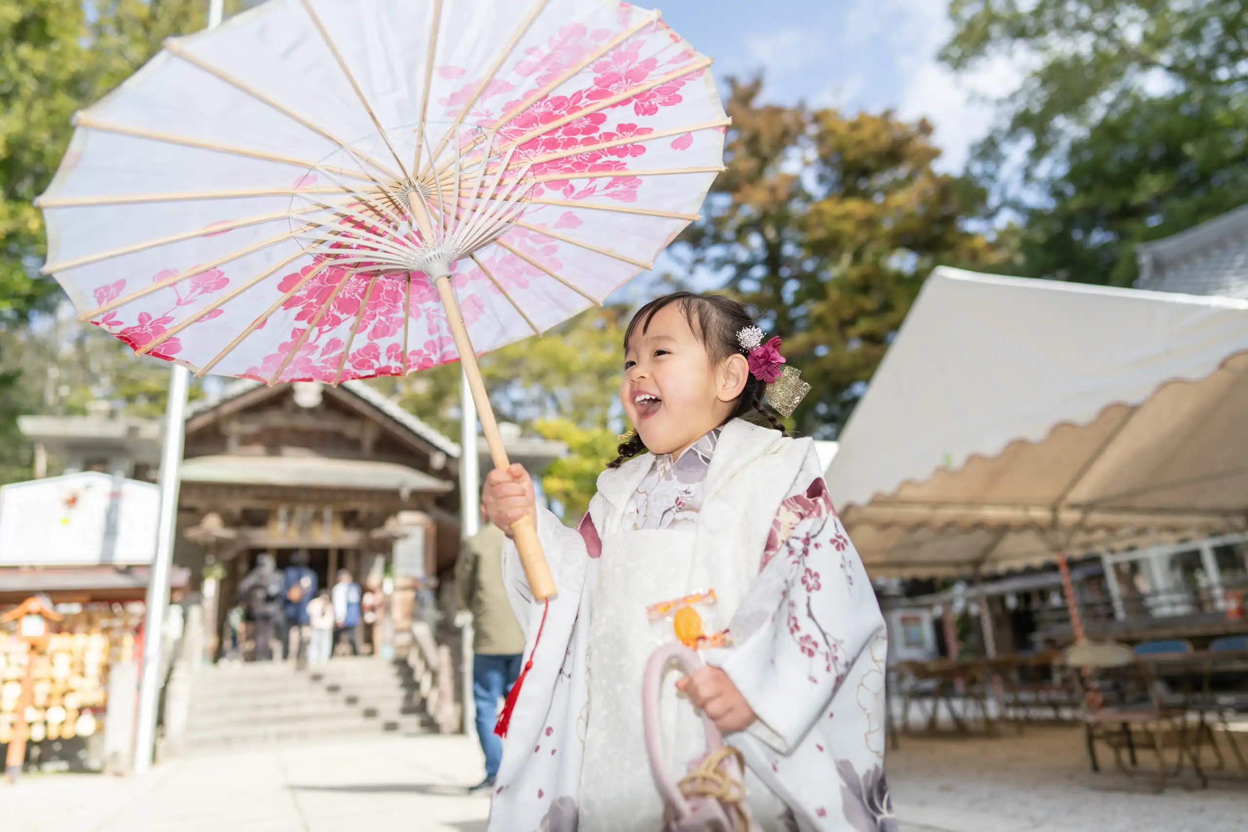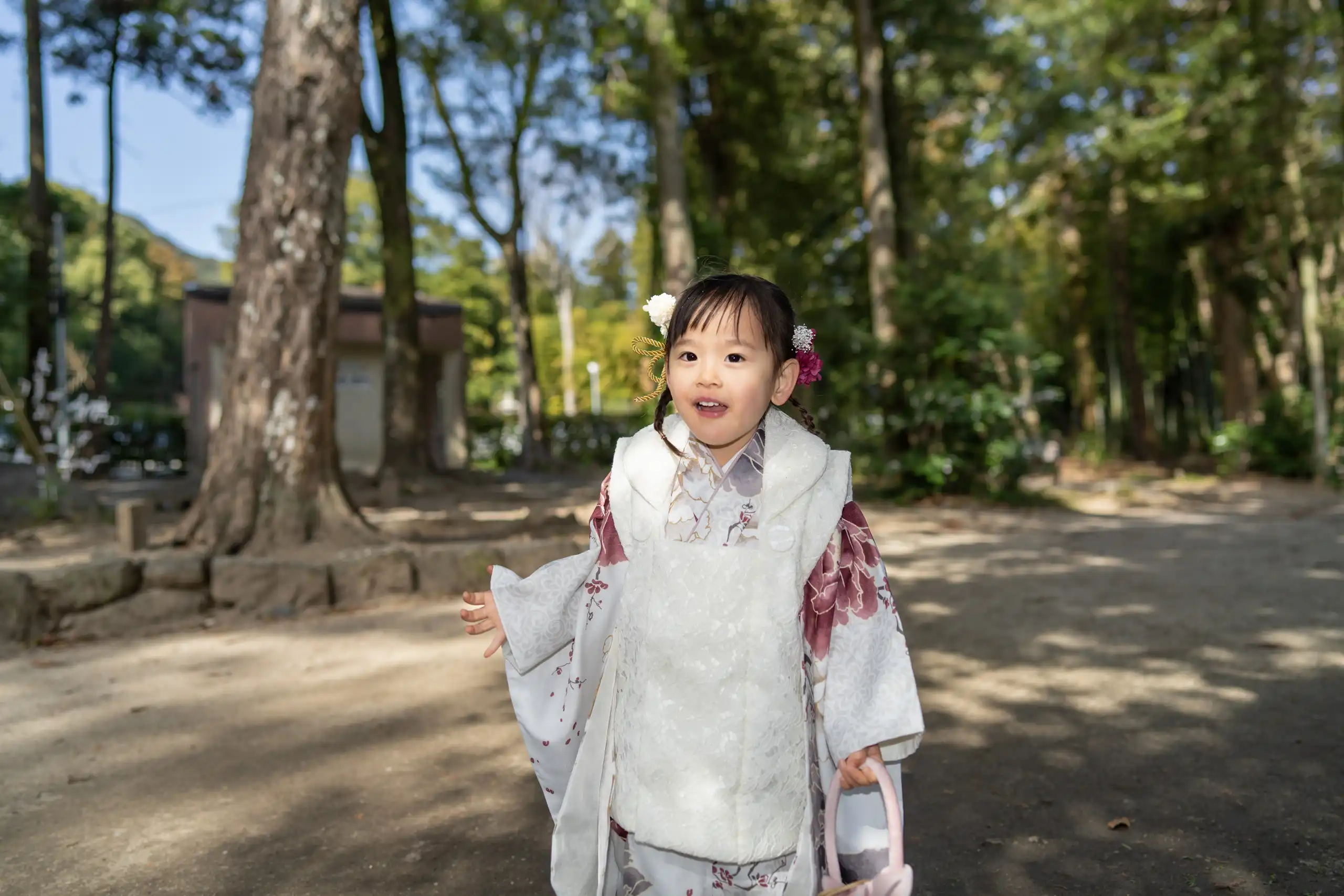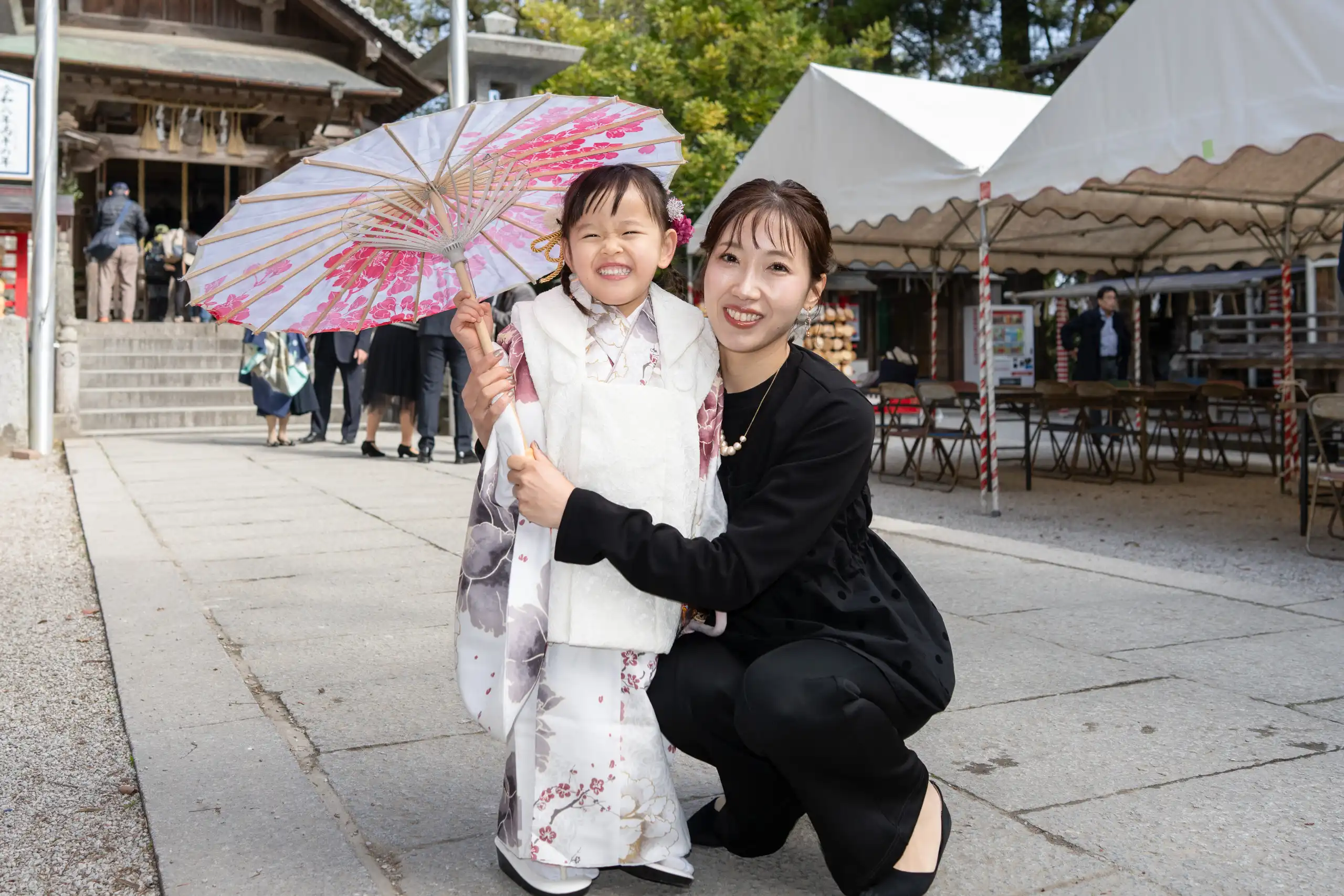 撮影場所は飯盛神社で、祈祷中の撮影も可能なことから七五三のロケーションとして人気のある神社です。