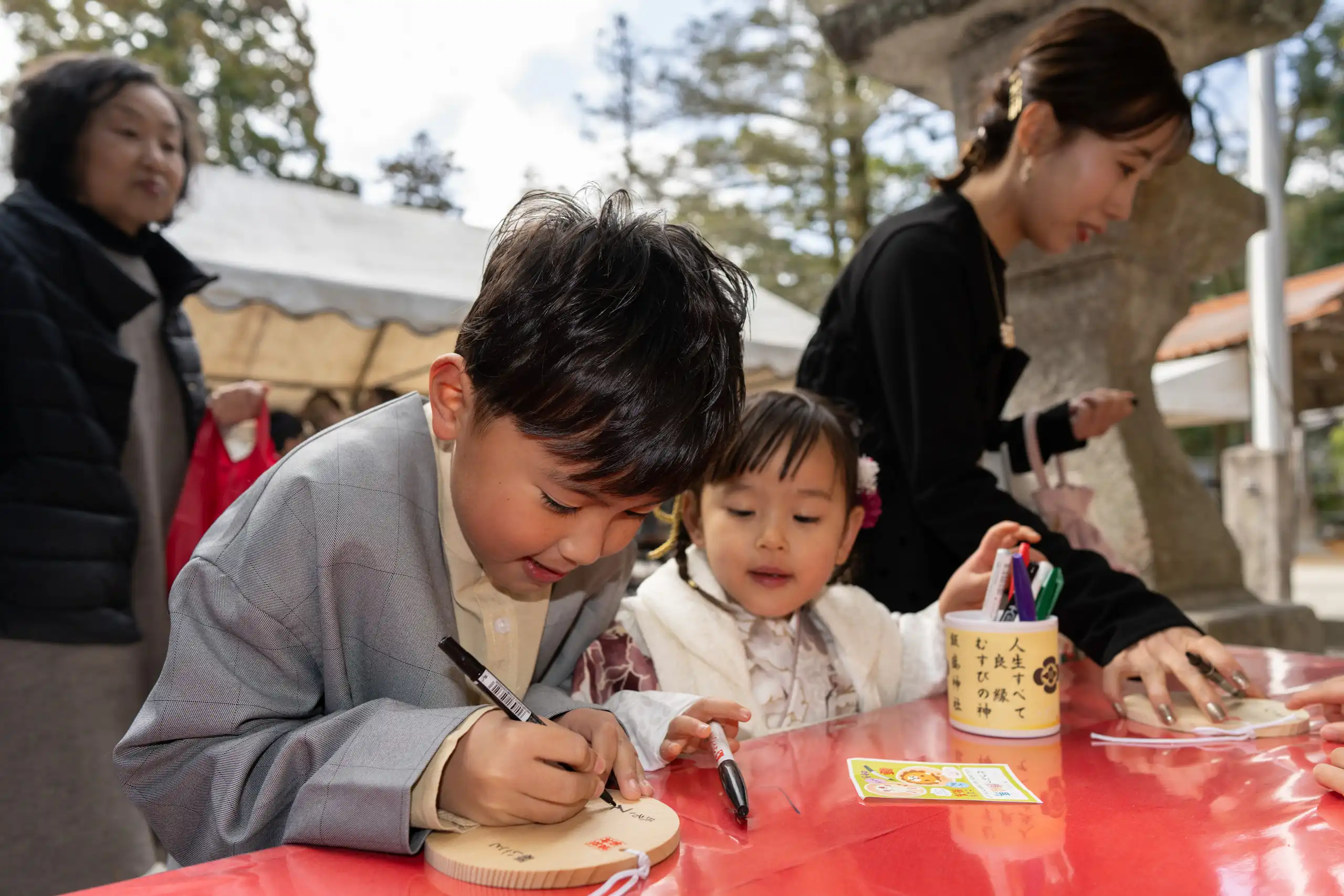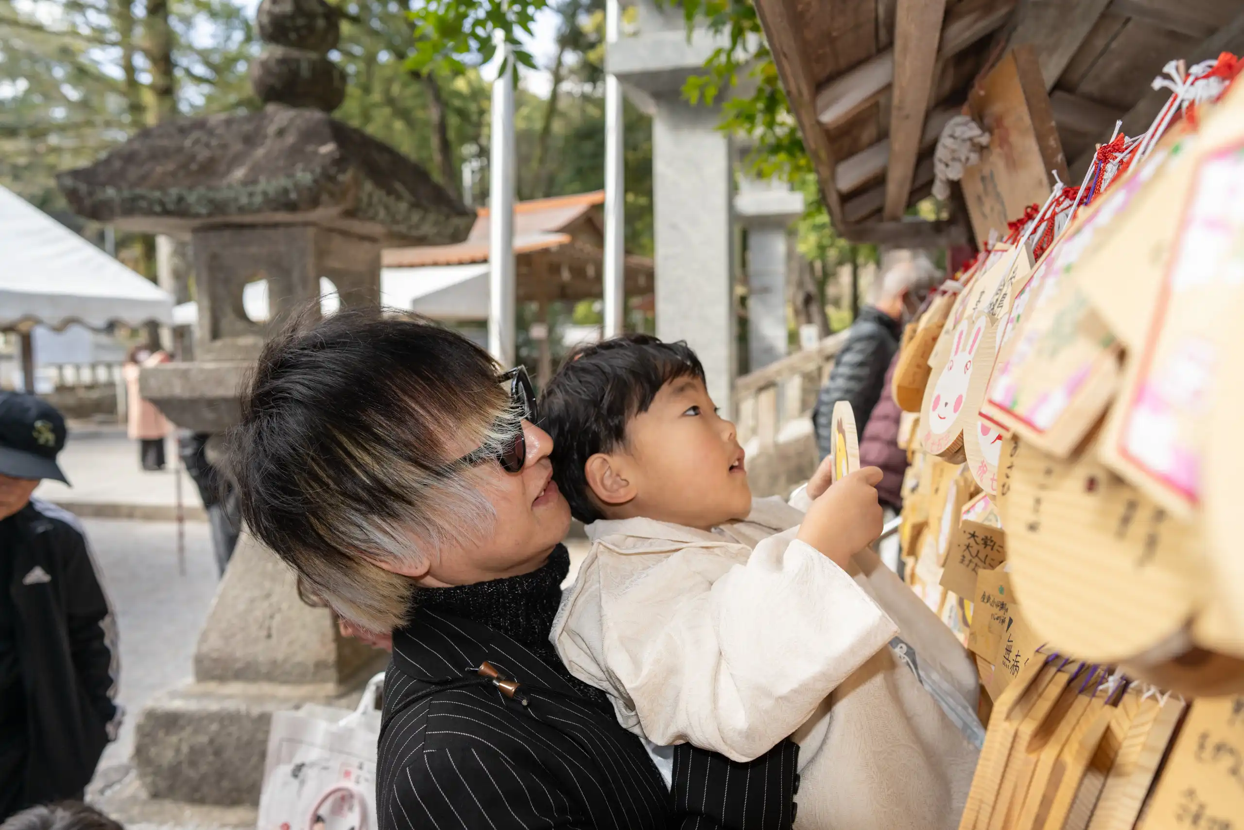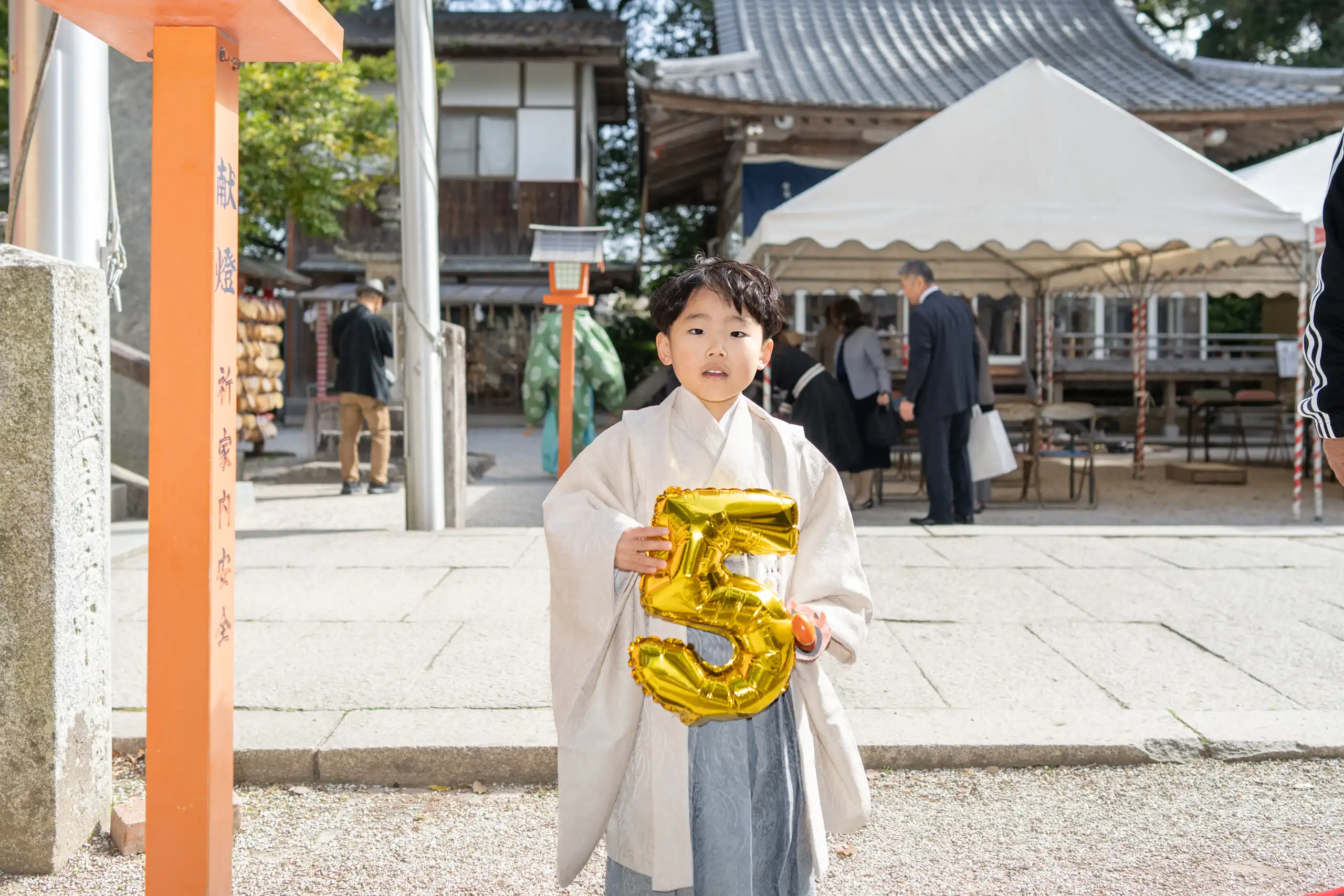 撮影場所は飯盛神社で、祈祷中の撮影も可能なことから七五三のロケーションとして人気のある神社です。