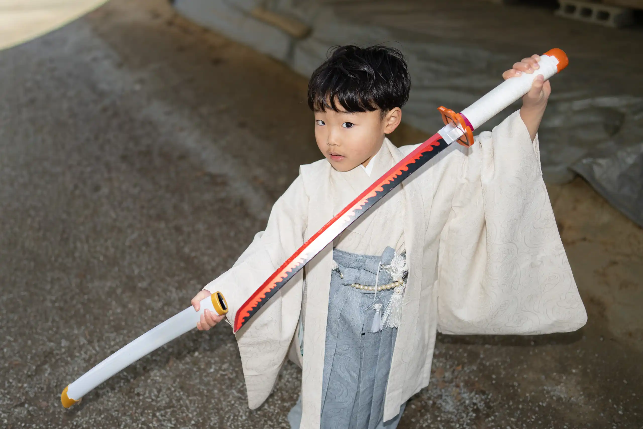 特に男の子が気に入ってくれた刀は撮影後そのままプレゼントさせていただき、嬉しそうな姿が印象的でした。