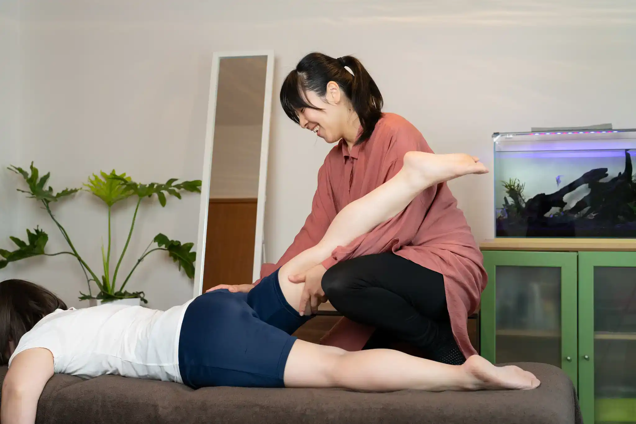 今回は、施術中の様子を撮影するために妻がモデルとして協力。しっかり効いたようで、撮影後には「体が軽くなった」と驚いていました。