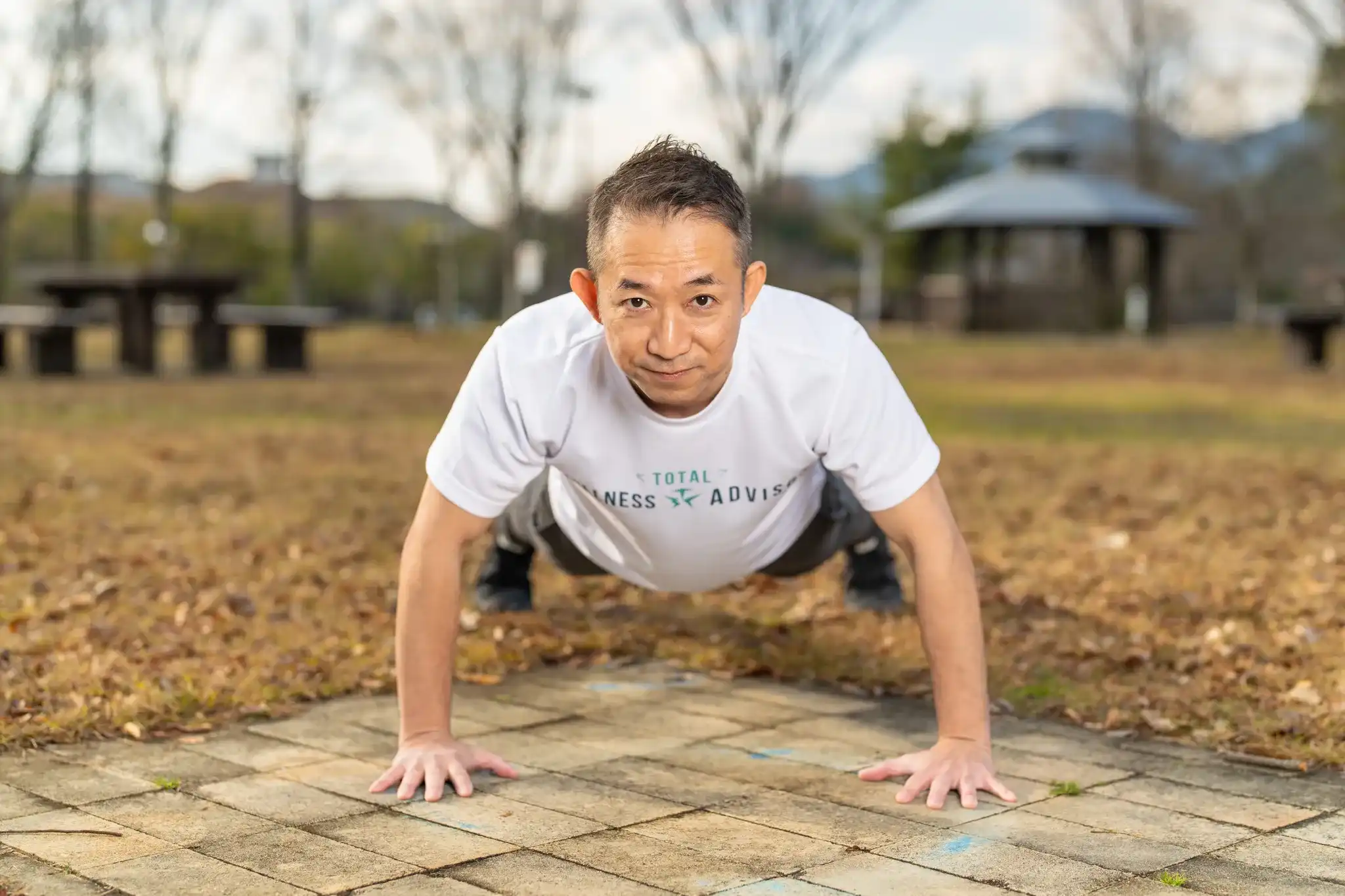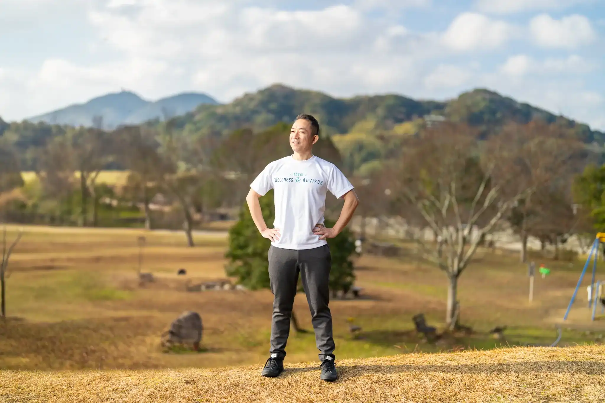福岡県古賀市にあるグリーンパークで、パーソナルトレーナーの方のプロフィール撮影を行いました。快晴の中、大自然をバックに、動きのある写真を意識して撮影しました。特にランニングカットでは私自身も一緒に走り、リアルな動きを切り取ることができました。