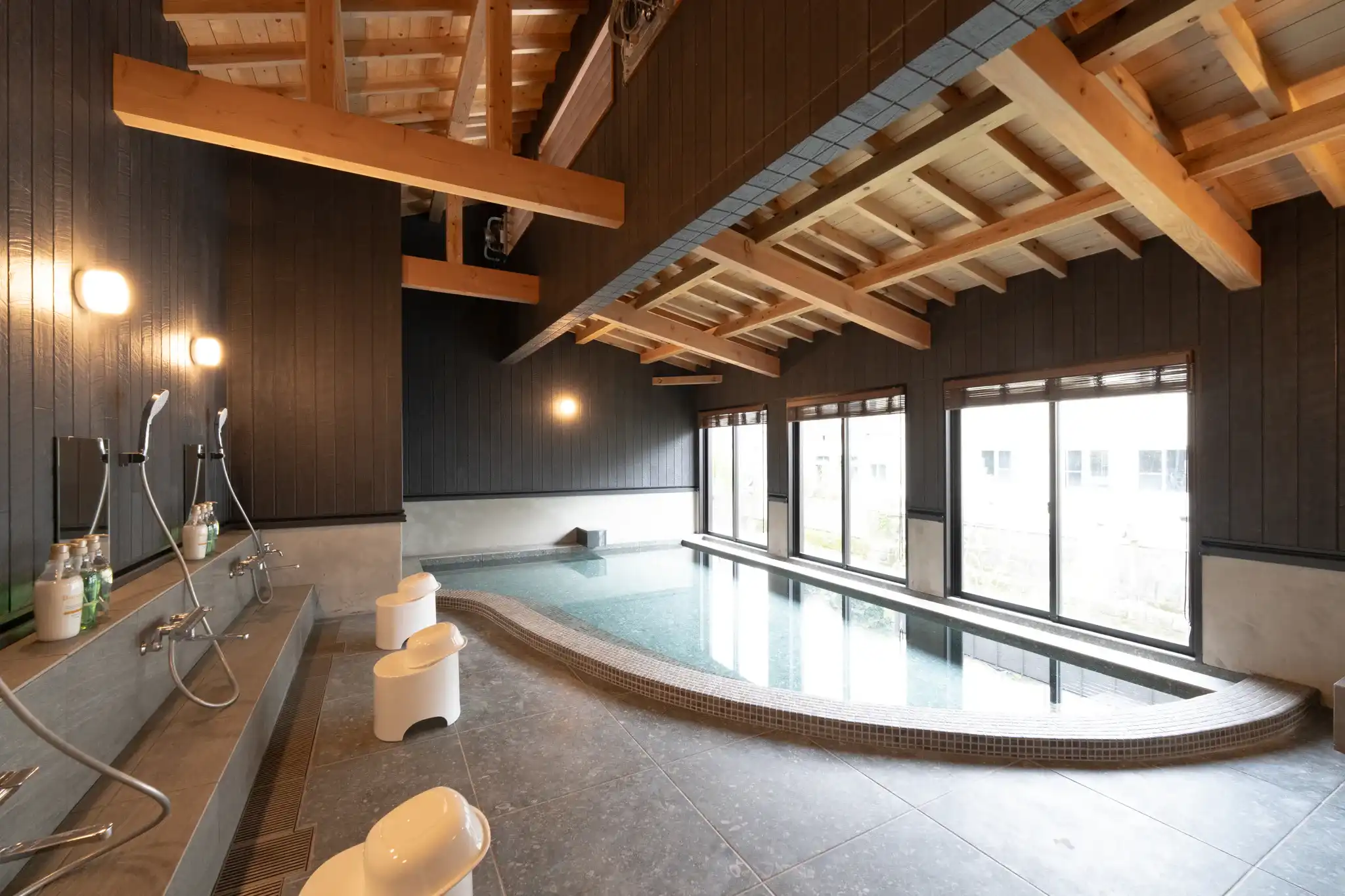 大きな窓から広がる山里の景色と開放感のある客室、温泉やレストランも心地よい空間でした。