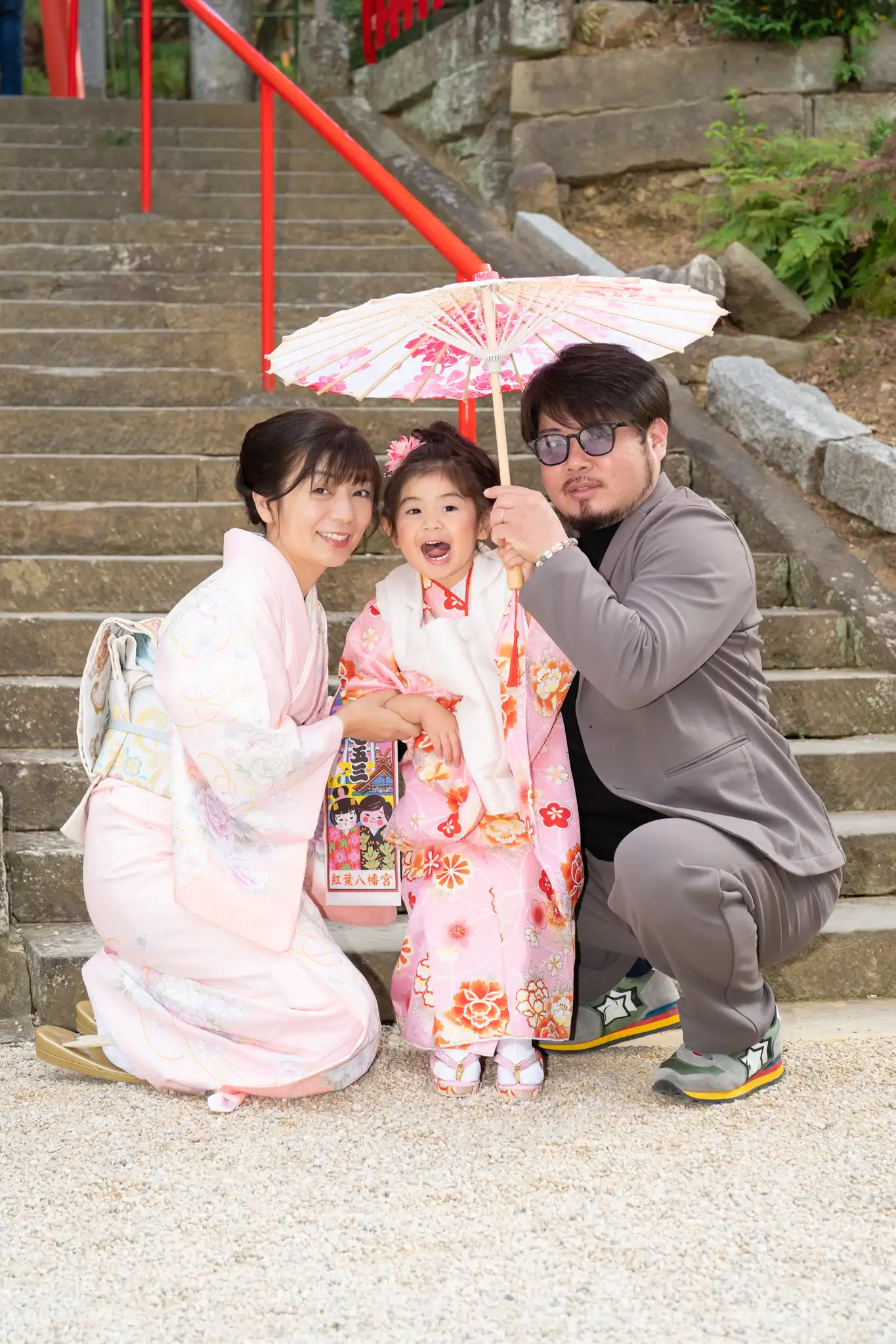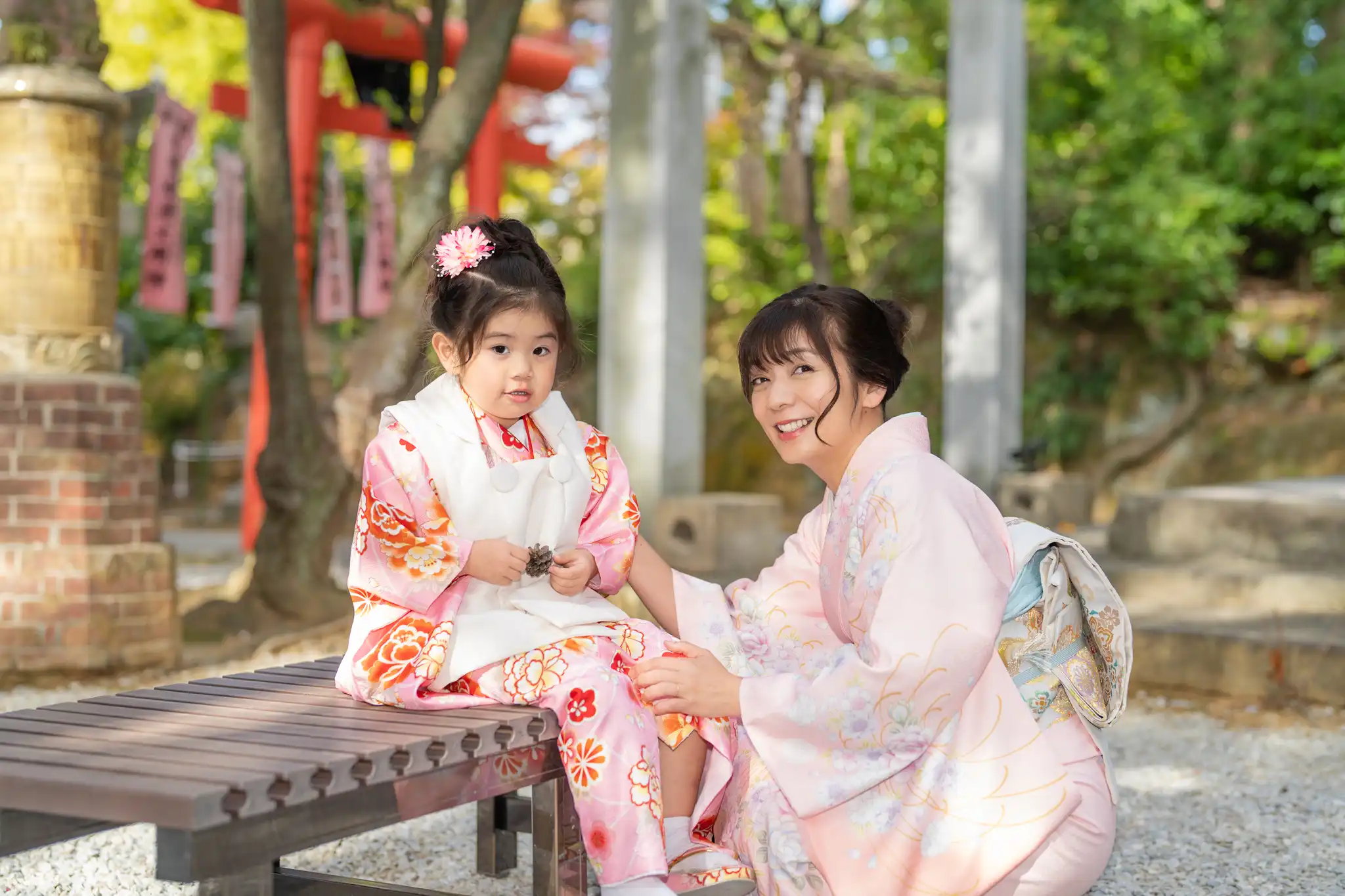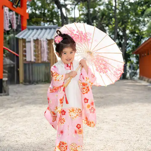 福岡県福岡市早良区にある紅葉八幡宮にて、3歳の女の子の七五三撮影を行いました。