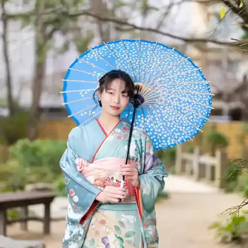 三姉妹の長女様の撮影です。福岡市博多区の中心部に位置する楽水園は、都会の喧騒を忘れさせてくれる美しい日本庭園です。