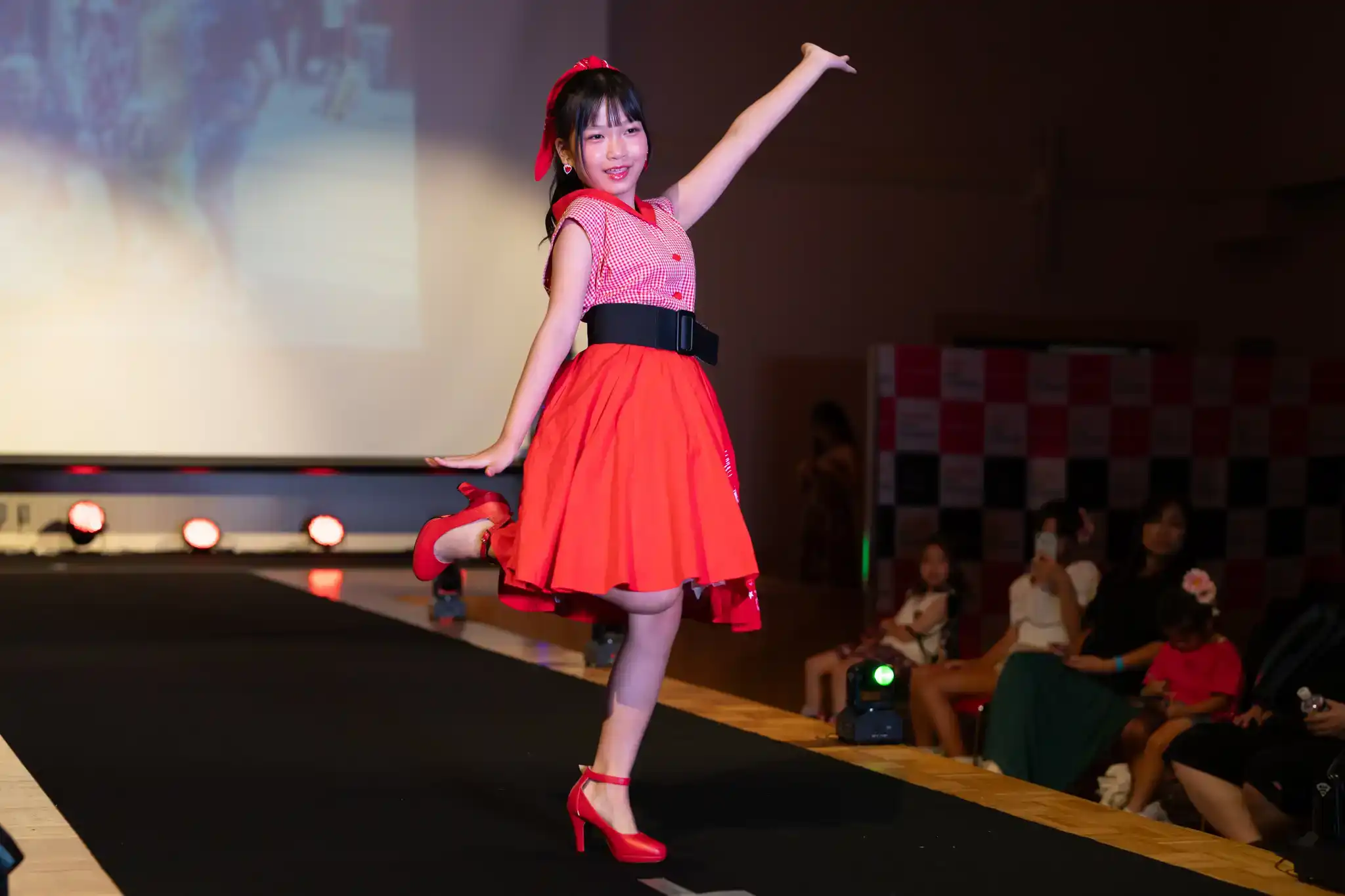 本番前、緊張でこわばっていた子どもたちも、ランウェイに踏み出した瞬間、表情が一気に変わる。