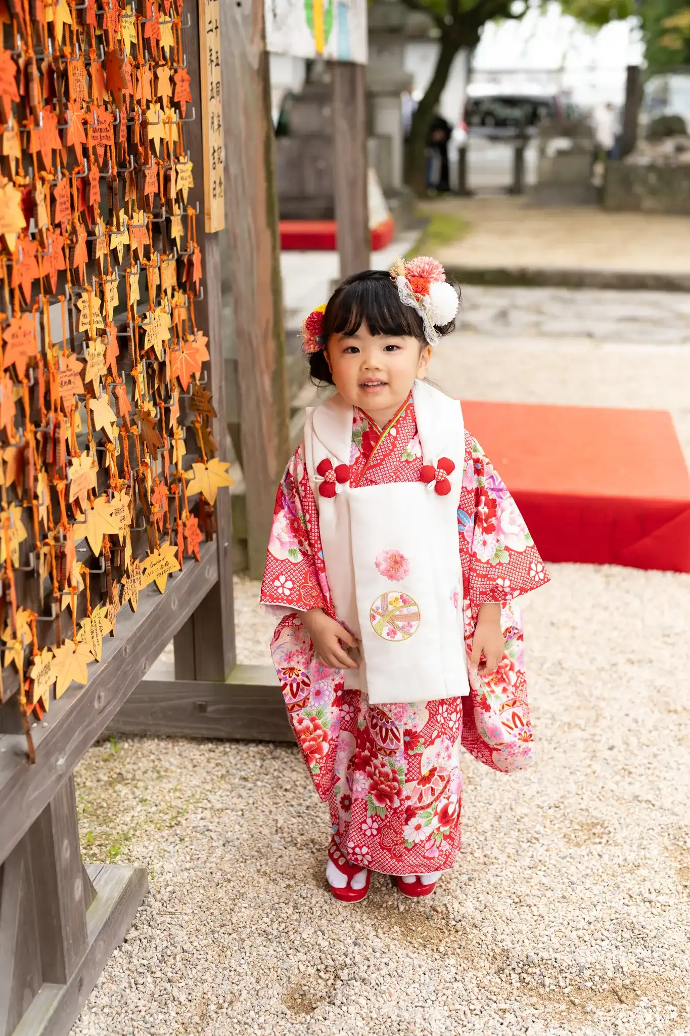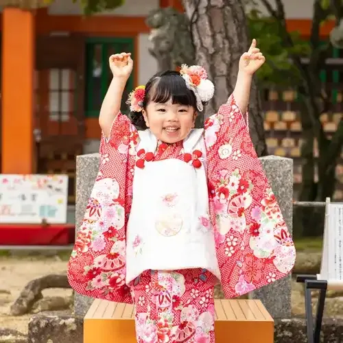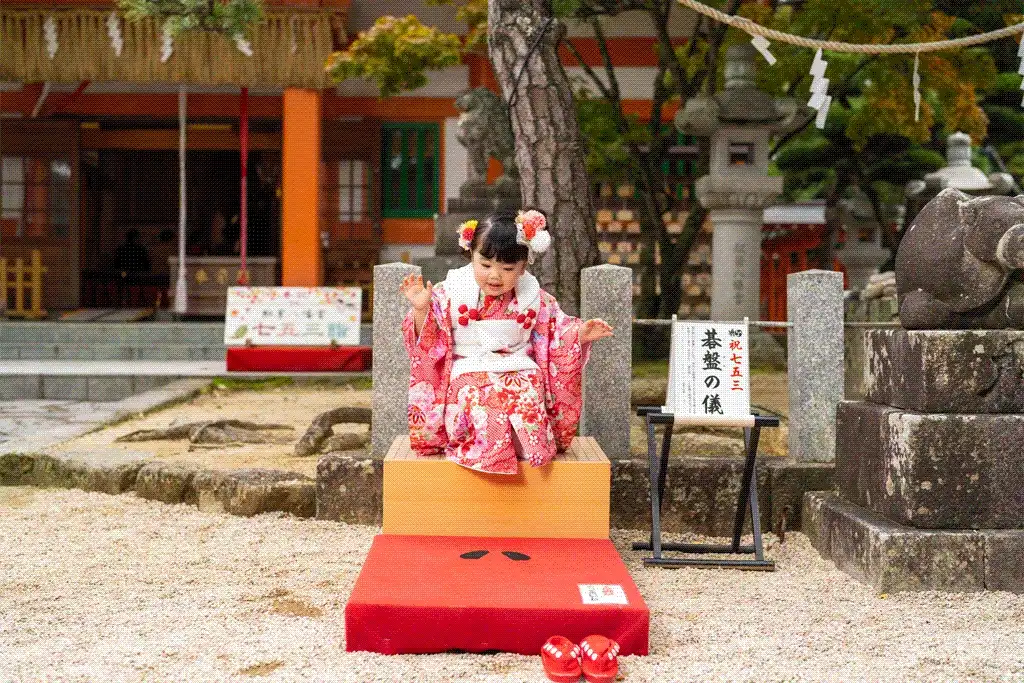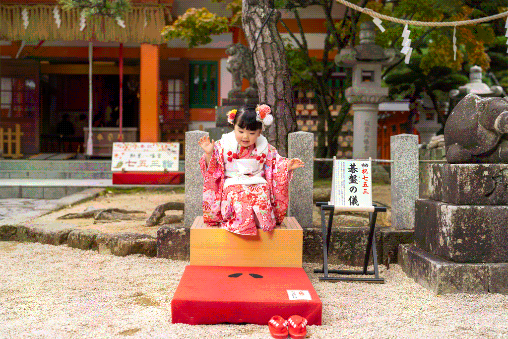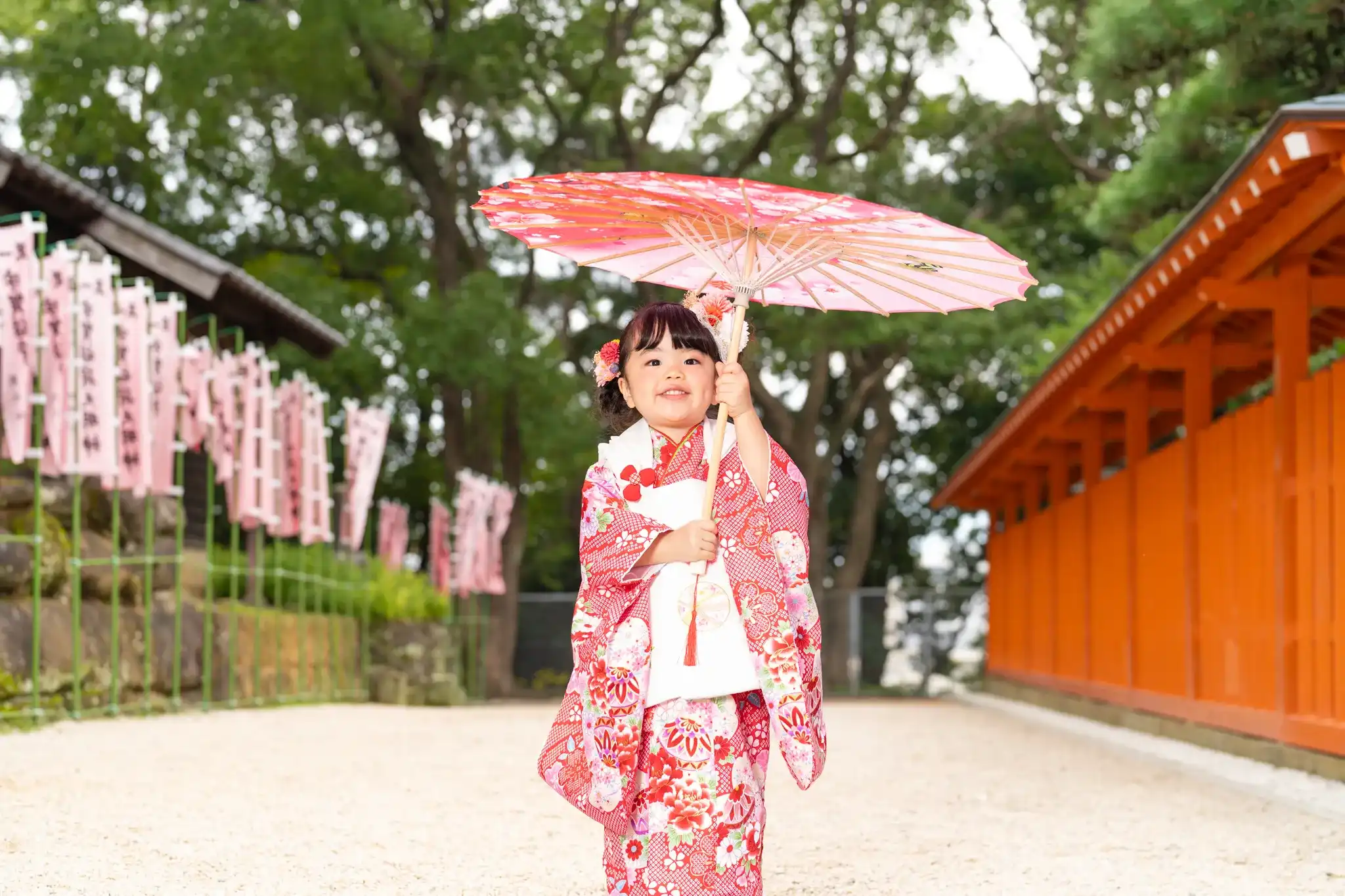 福岡県福岡市早良区にある紅葉八幡宮にて、3歳の女の子の七五三撮影を行いました。