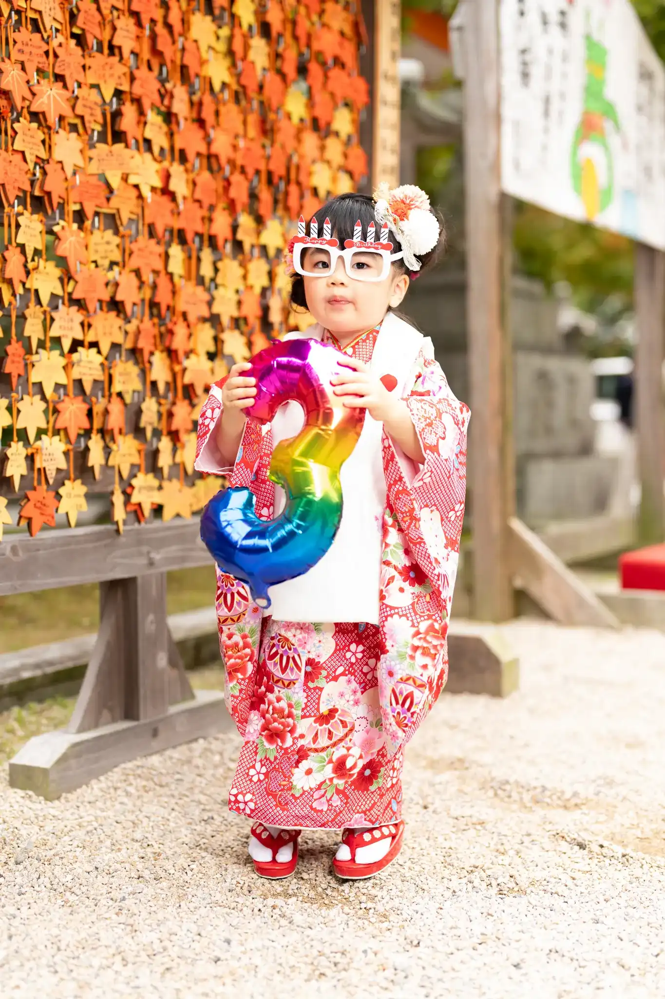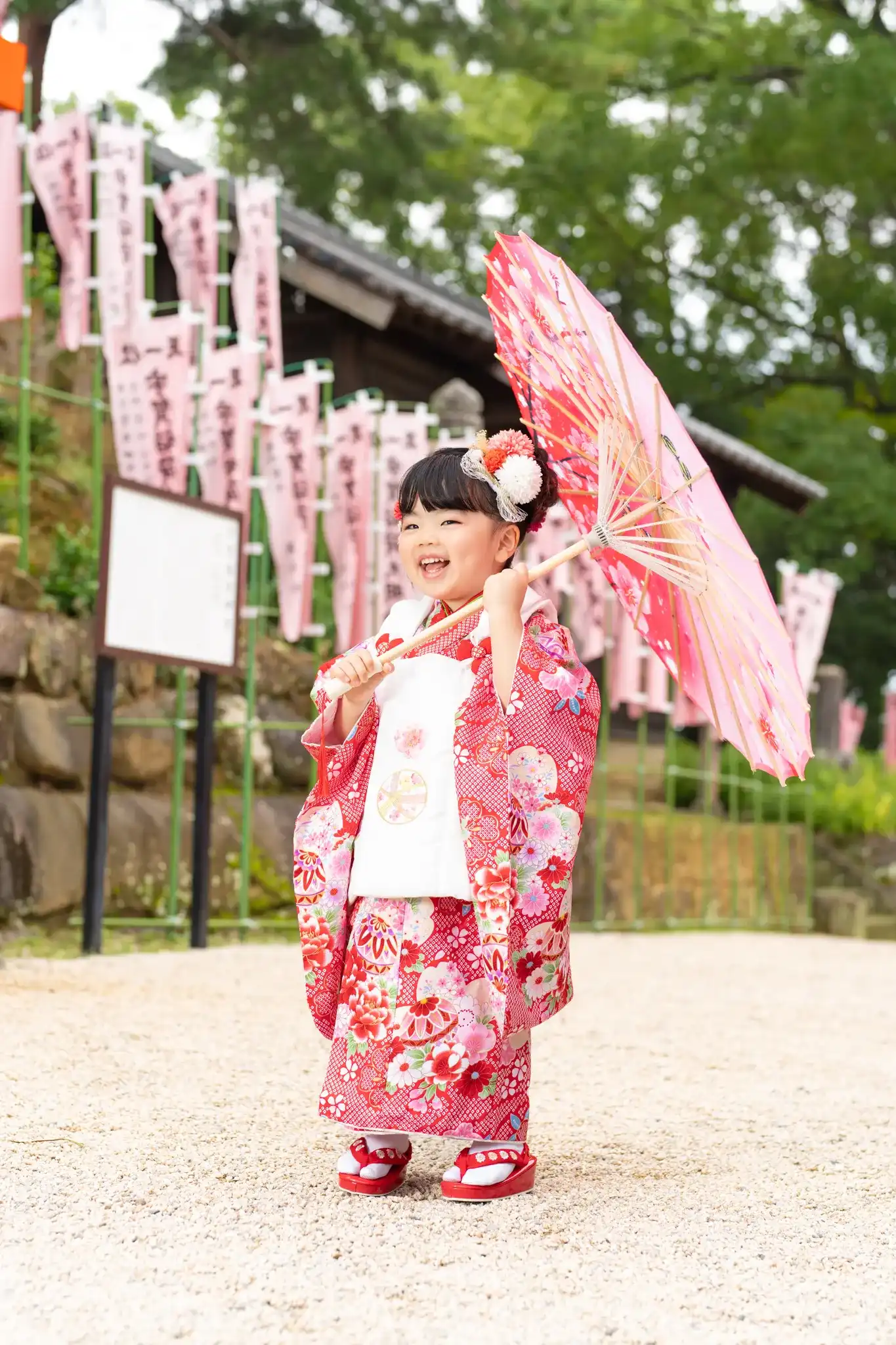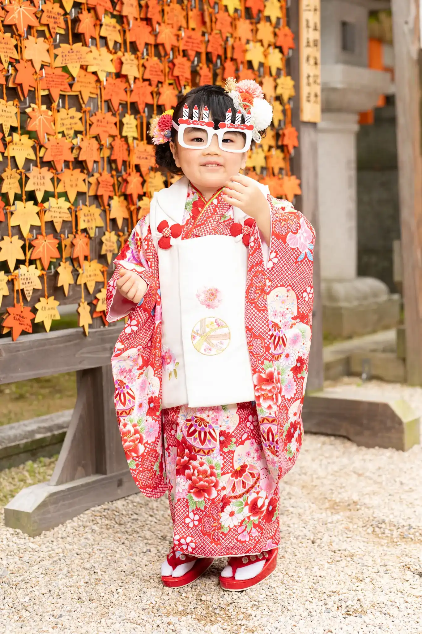 福岡県福岡市早良区にある紅葉八幡宮にて、3歳の女の子の七五三撮影を行いました。