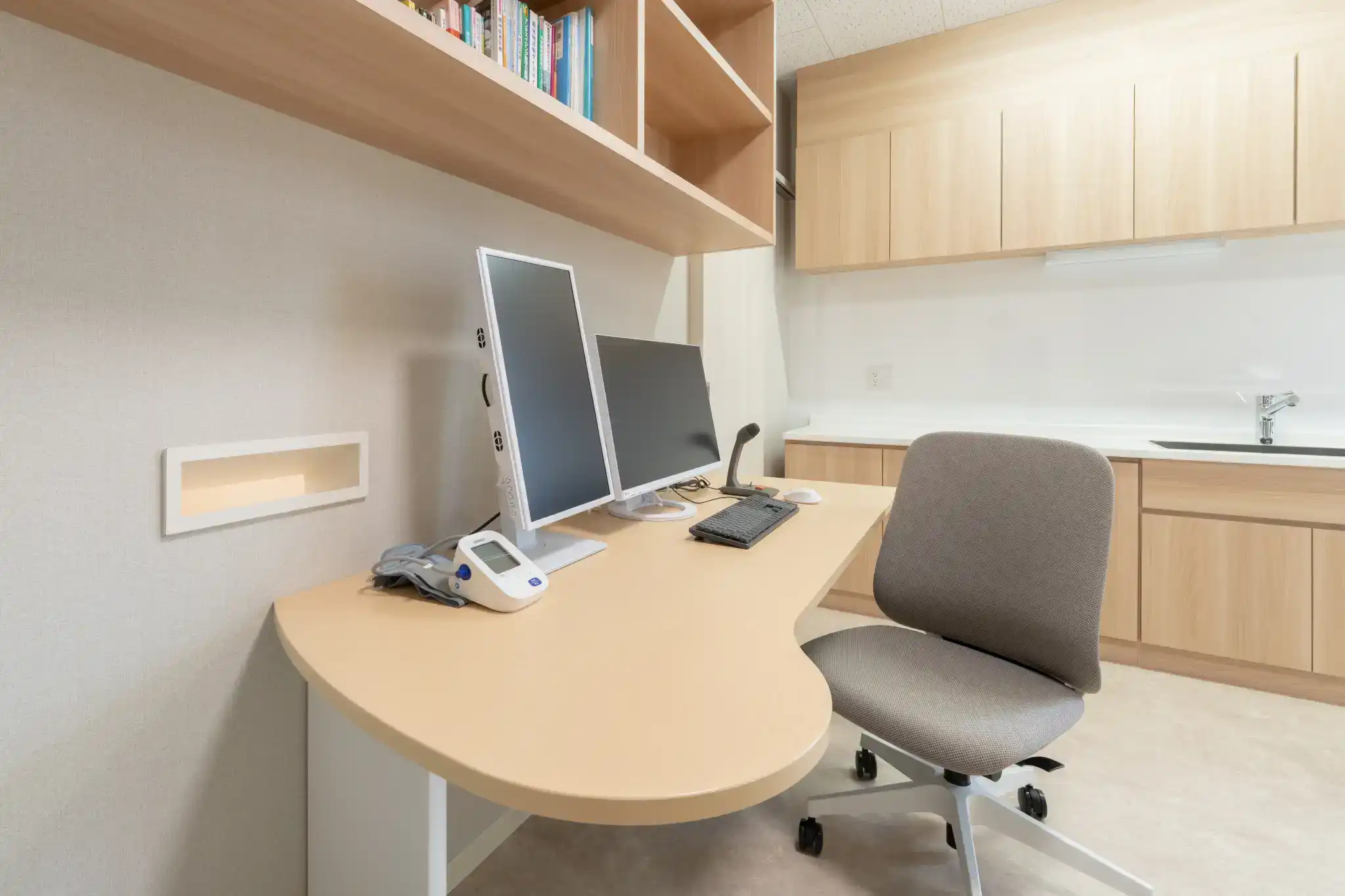 清潔感あふれる院内の様子や、シンプルで洗練された院外観を撮影。また、医師のプロフィール写真や建物全体の撮影も行っています。