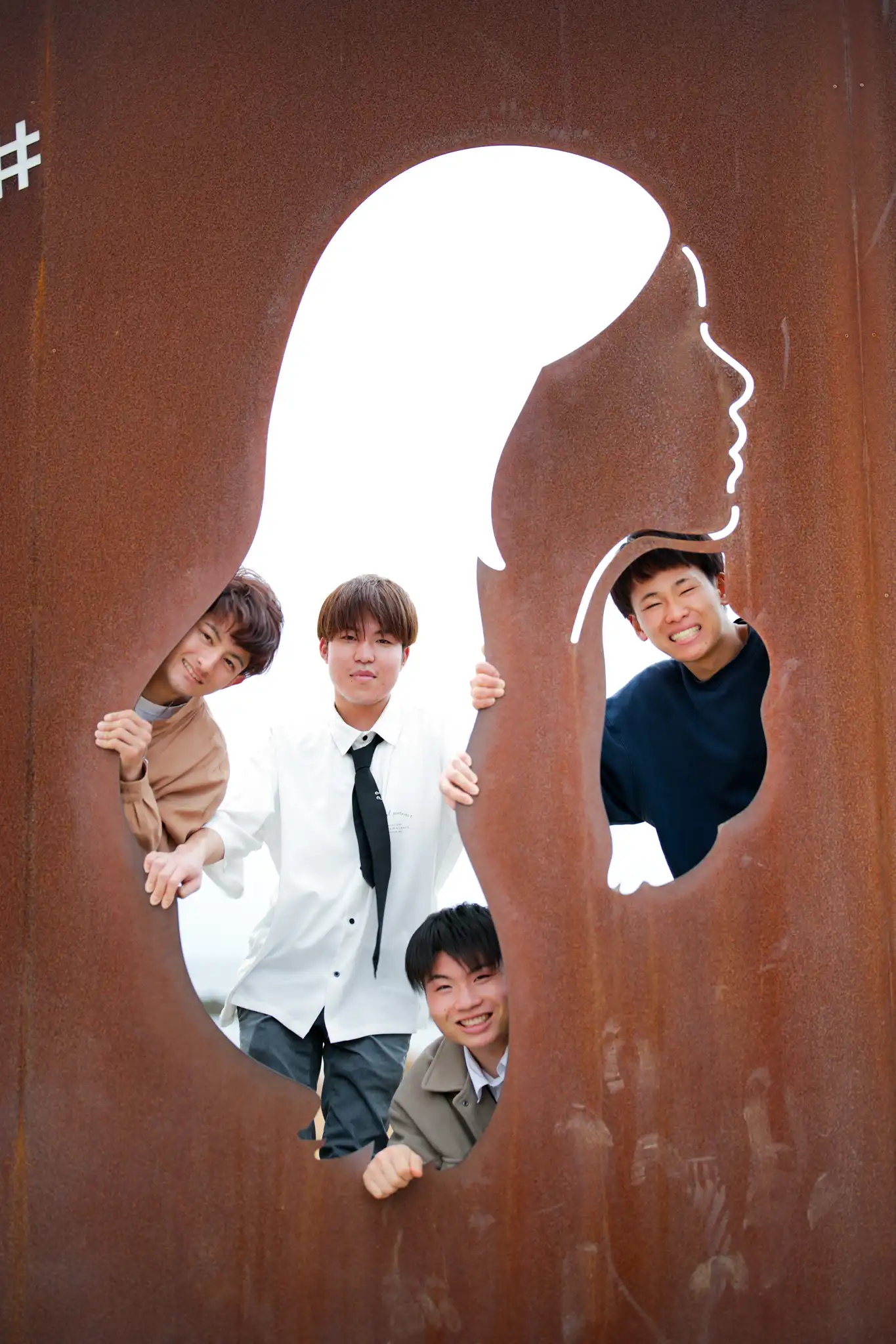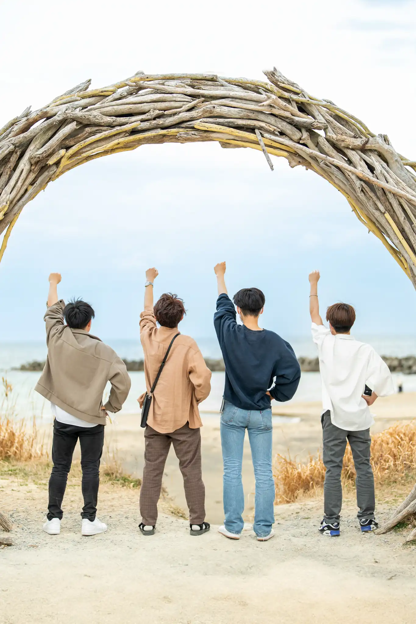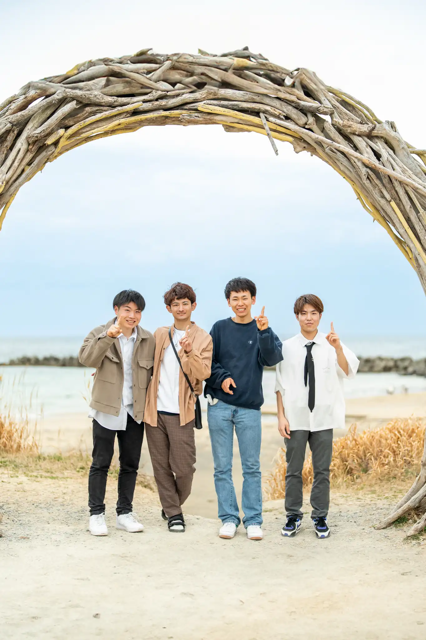 糸島の有名スポットで仲良し男子達の記念撮影です。