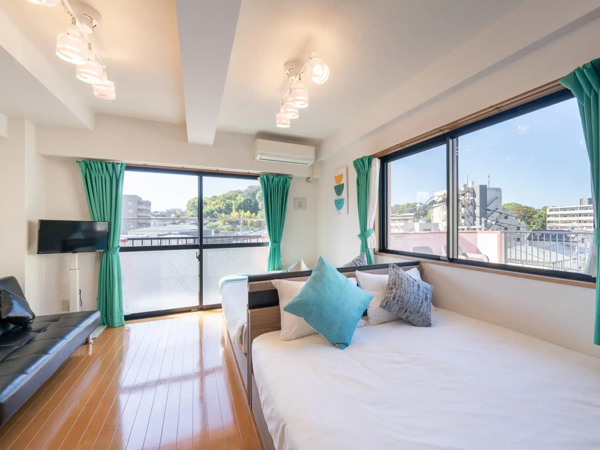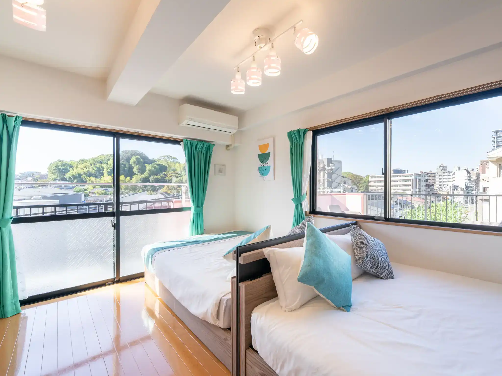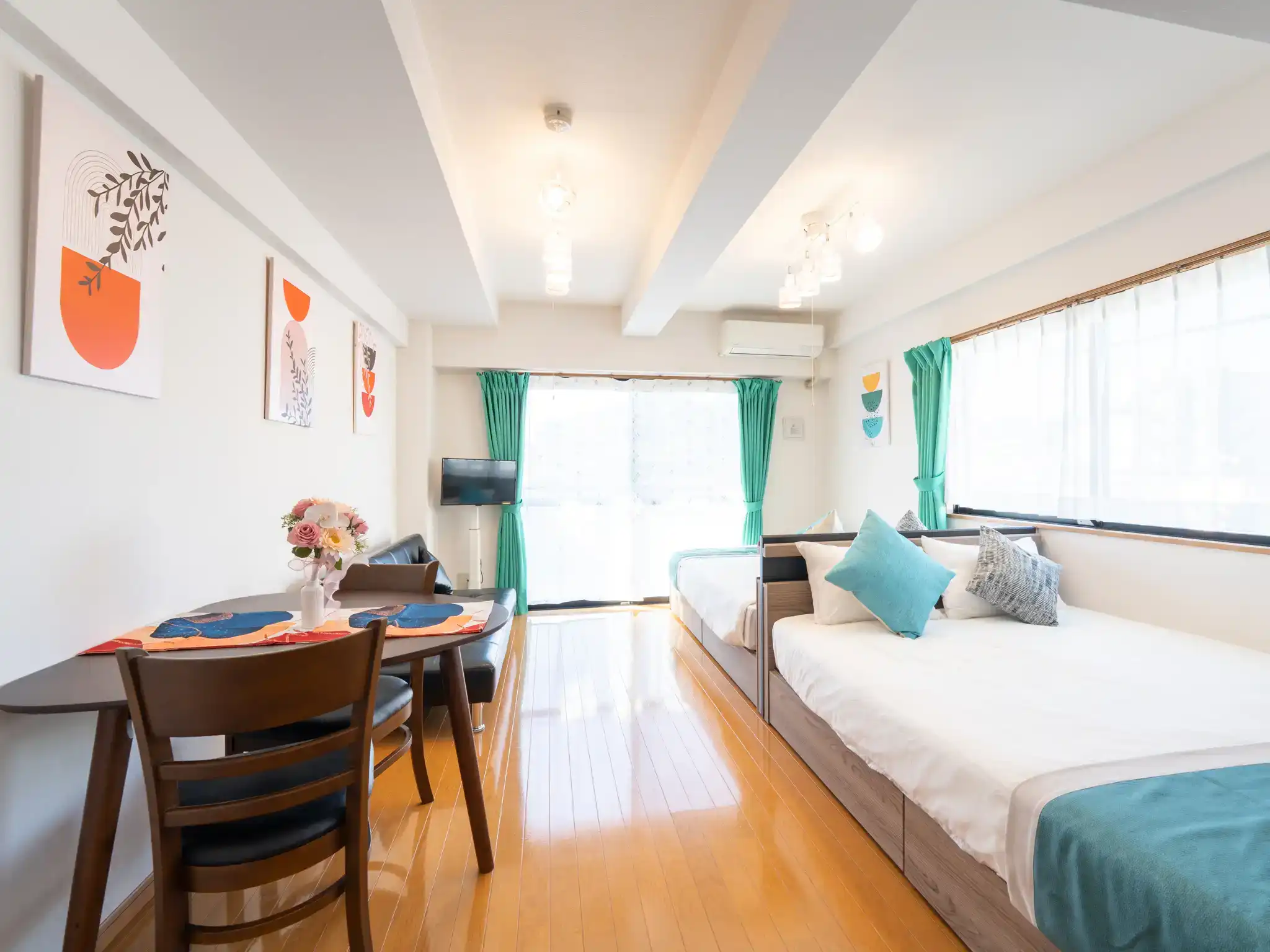 福岡市西区・愛宕の民泊物件を撮影させていただきましたが、扉を開けた瞬間に広がるティファニーブルーの世界観に、思わず心がときめくお部屋でした。
