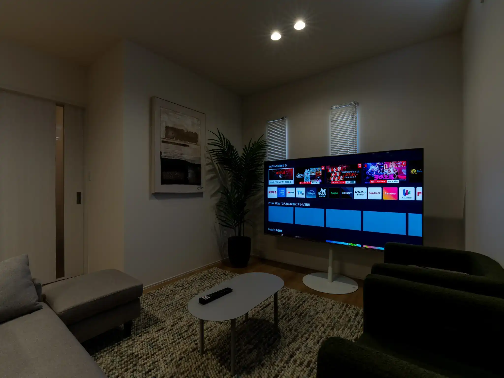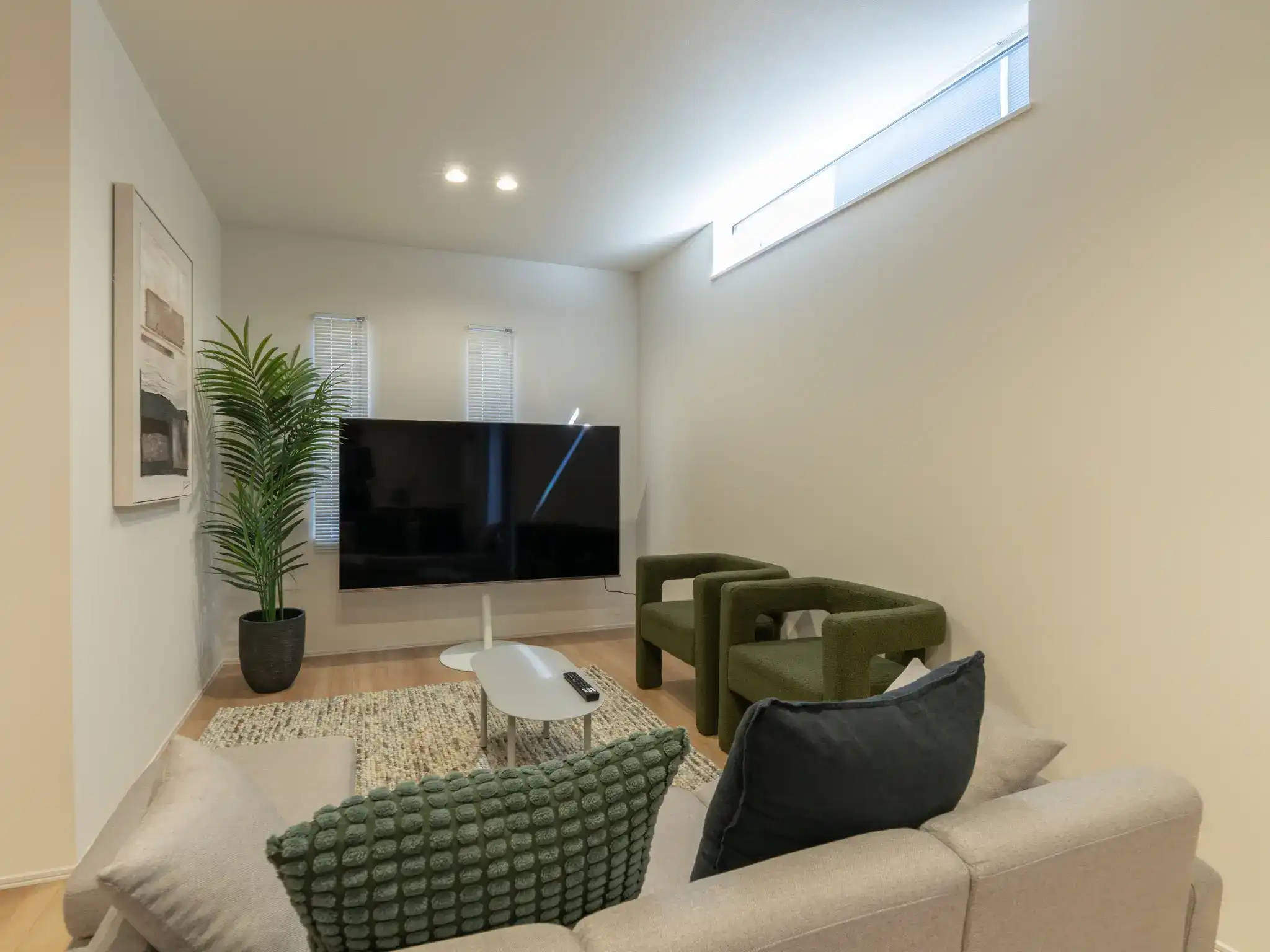 1階リビングはシアタールームとしても楽しめる仕様で、周辺環境の魅力とともに丁寧に撮影させていただいた、印象深い一棟です。