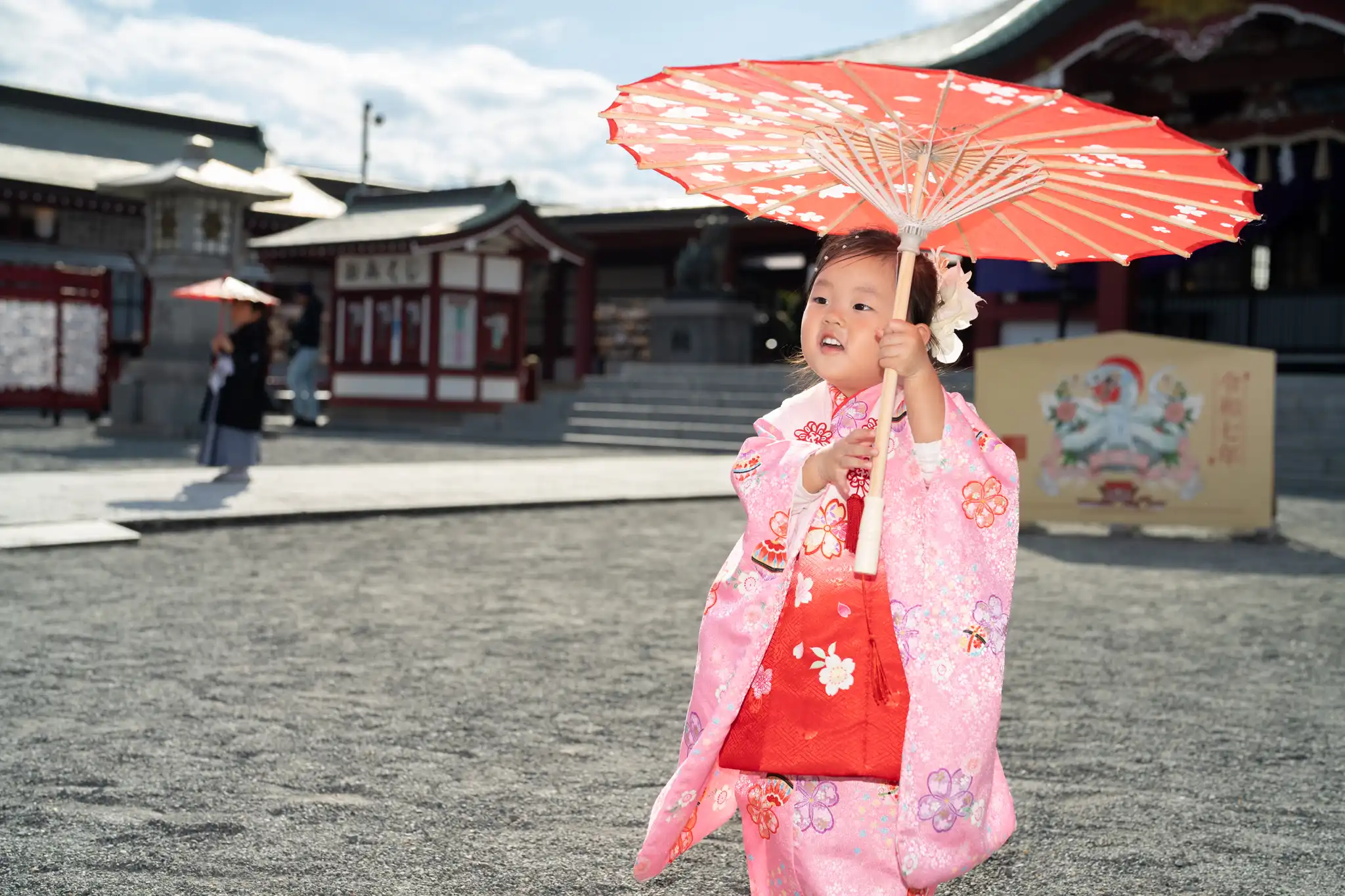何度も訪れている篠崎八幡神社は、今回もやっぱり美しく、和傘の小物もお気に入りに。