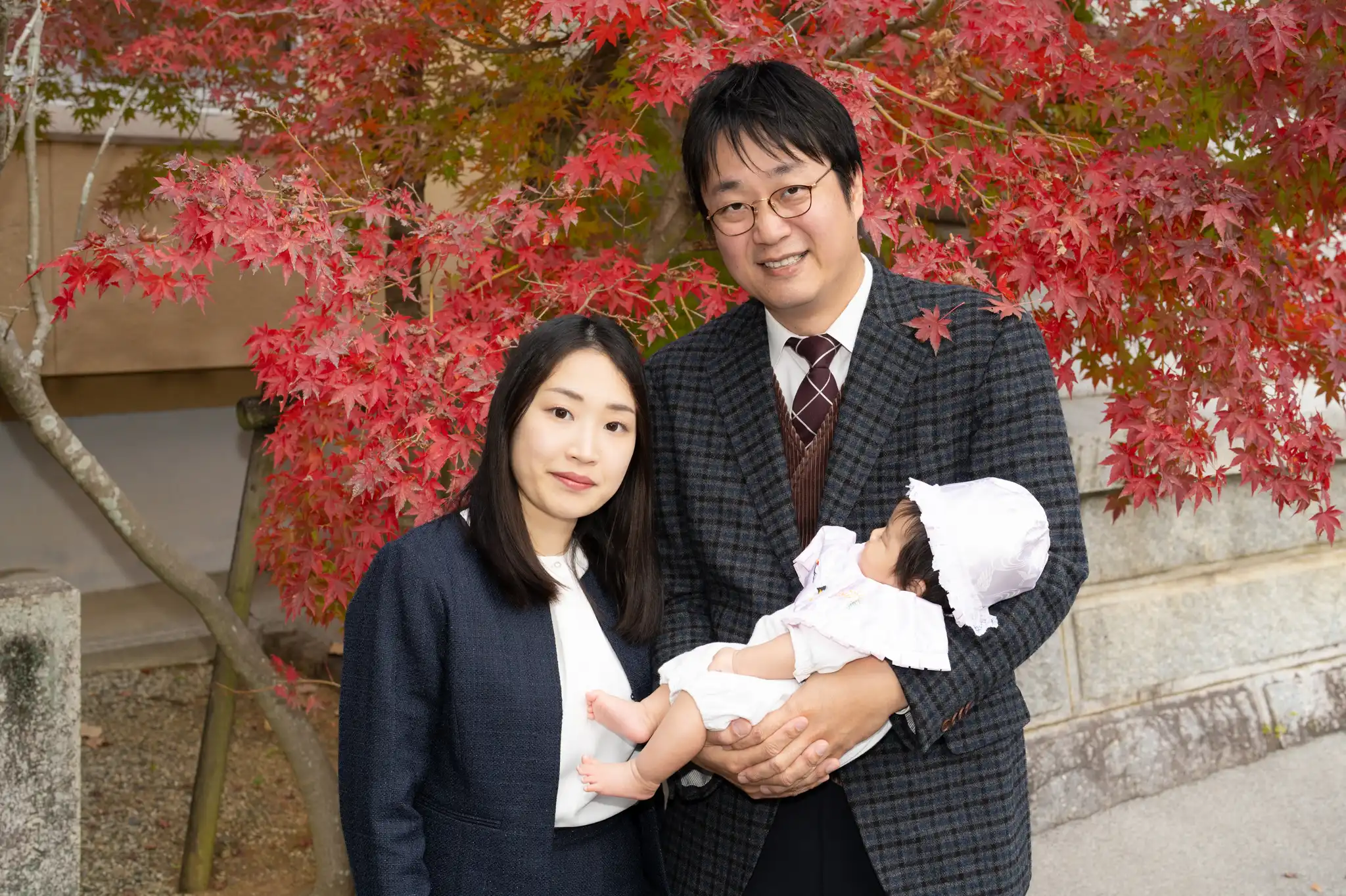 お宮参りの赤ちゃんは、眠っていることが多い中、この日はしっかり目線をくれる場面も。