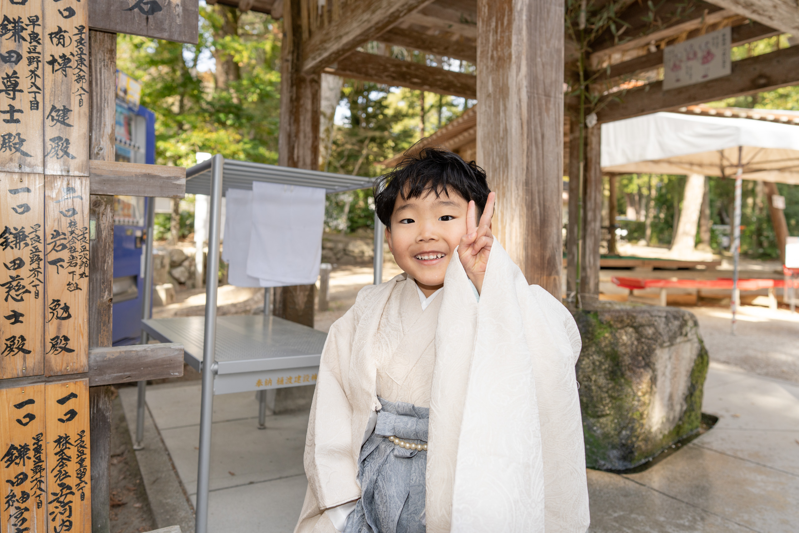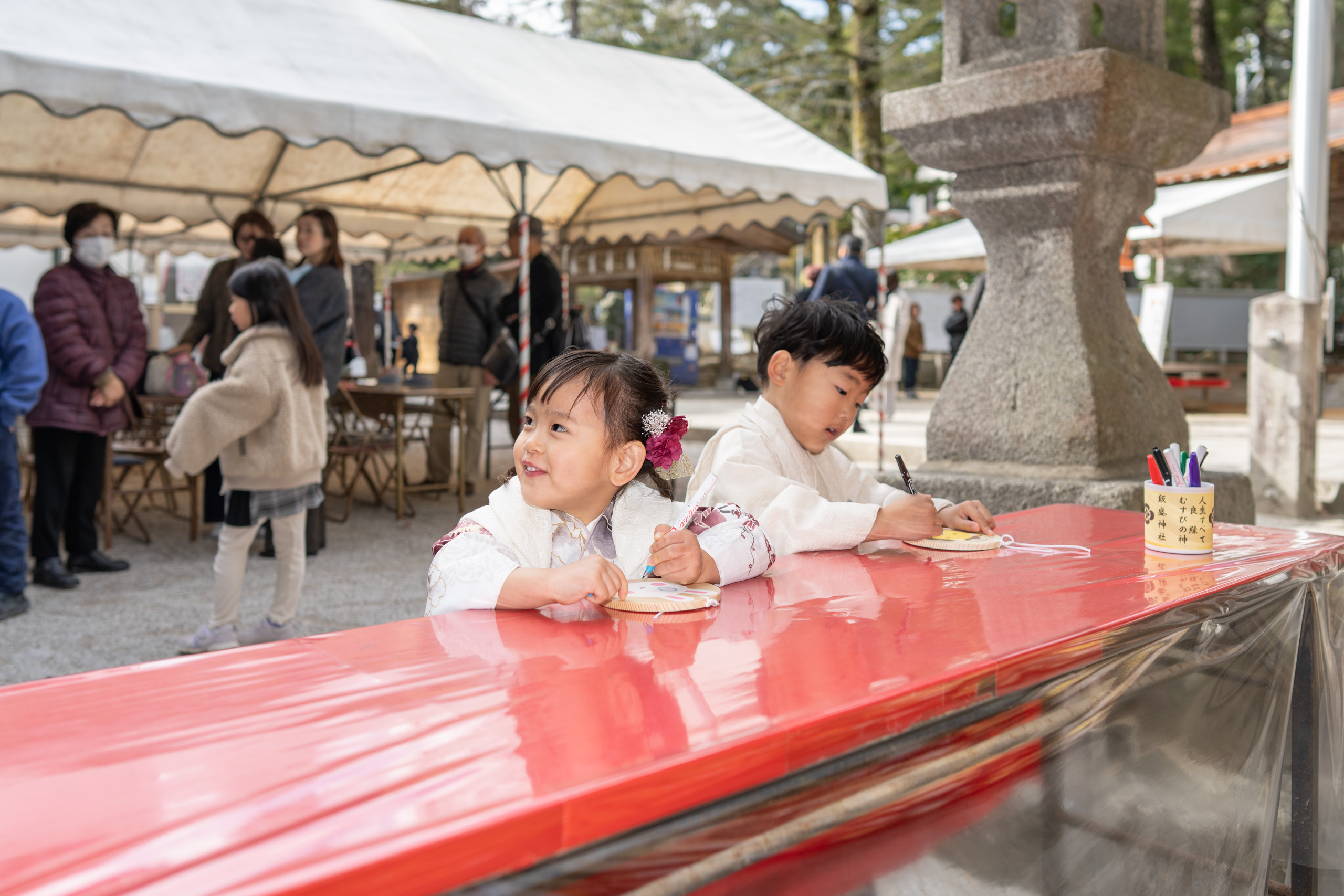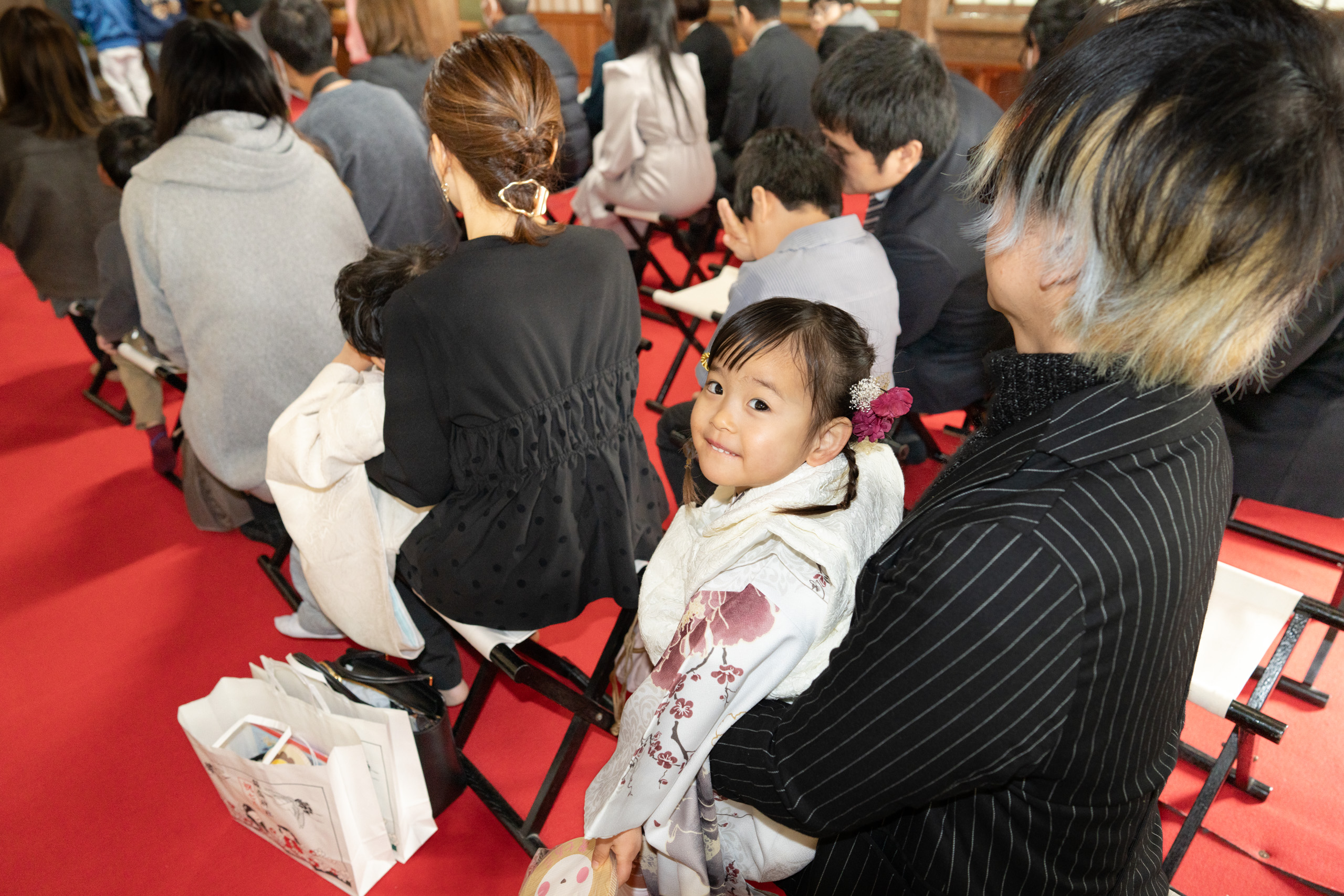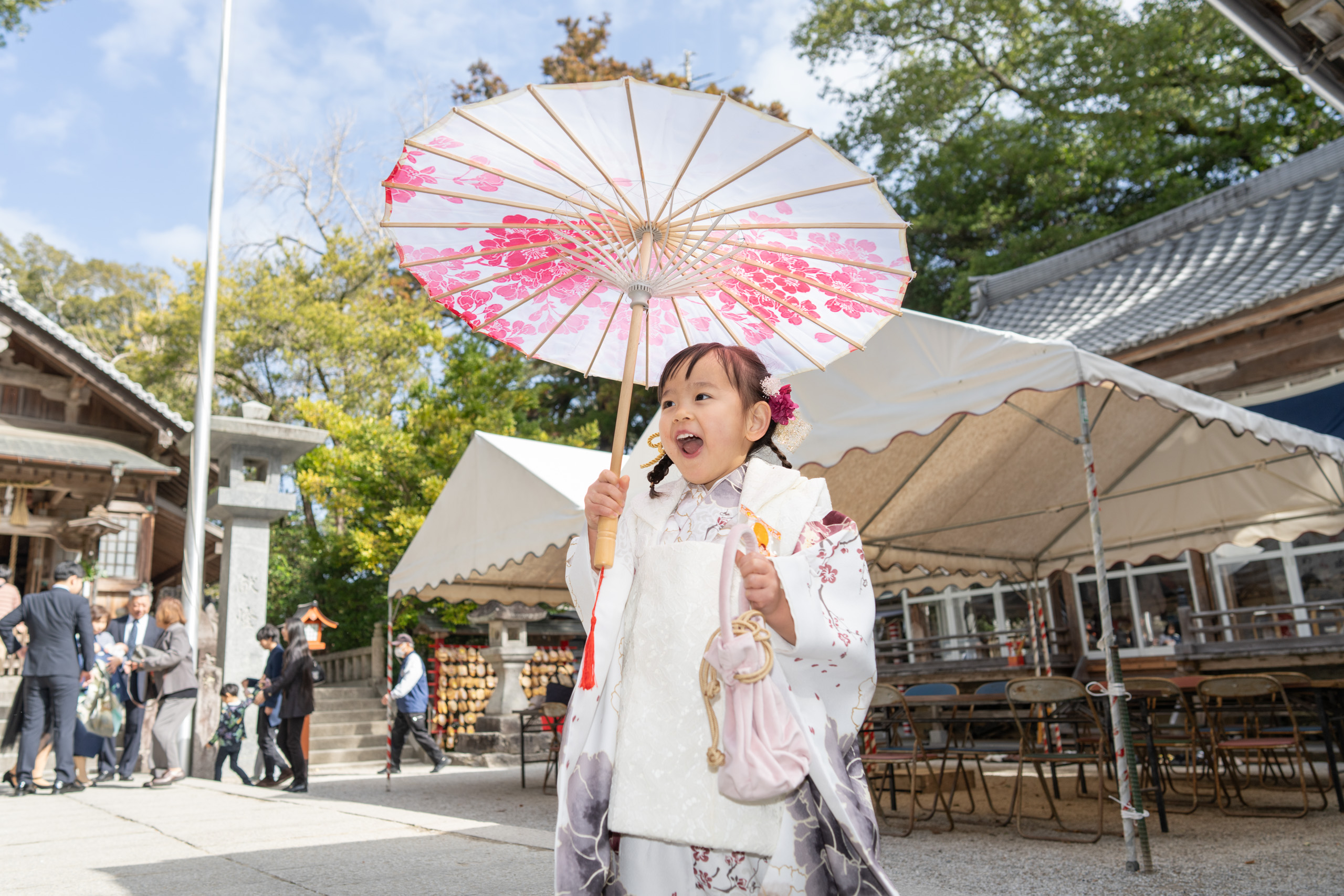 撮影場所は飯盛神社で、祈祷中の撮影も可能なことから七五三のロケーションとして人気のある神社です。