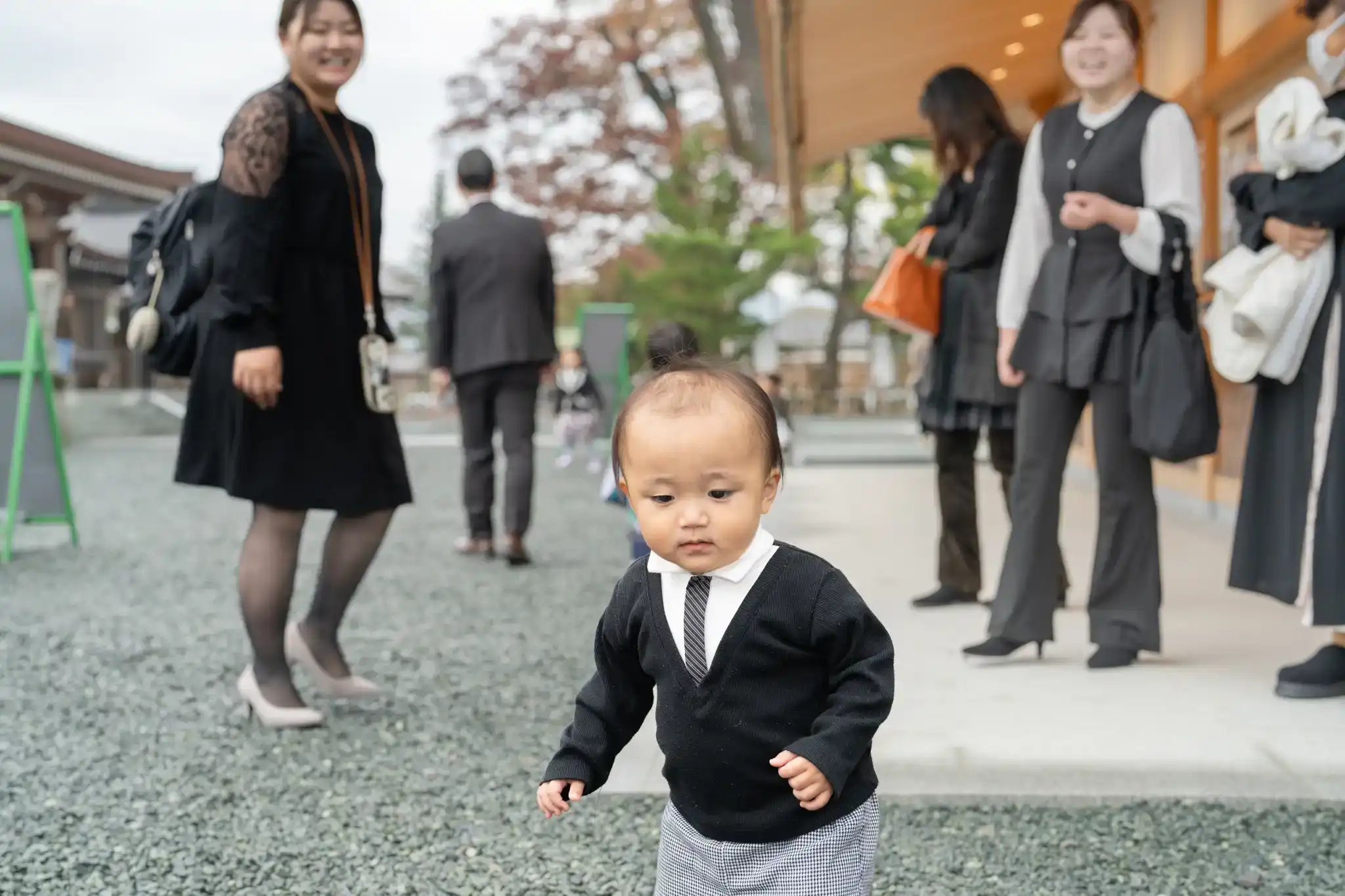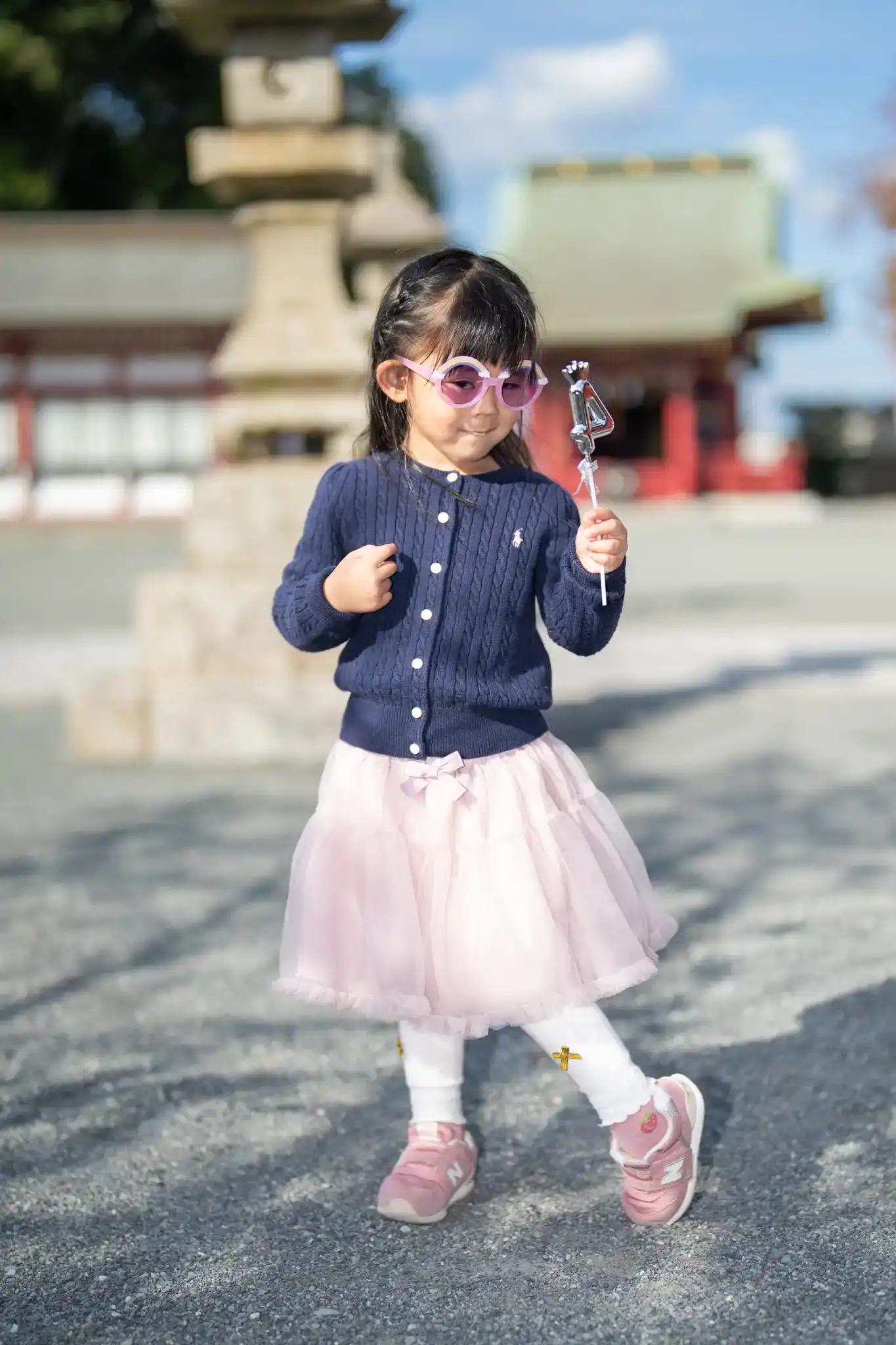 4歳のお姉ちゃんは、ネイビーのカーディガンにチュールスカートを合わせた洋装で、きちんと感と動きやすさのバランスが◎。