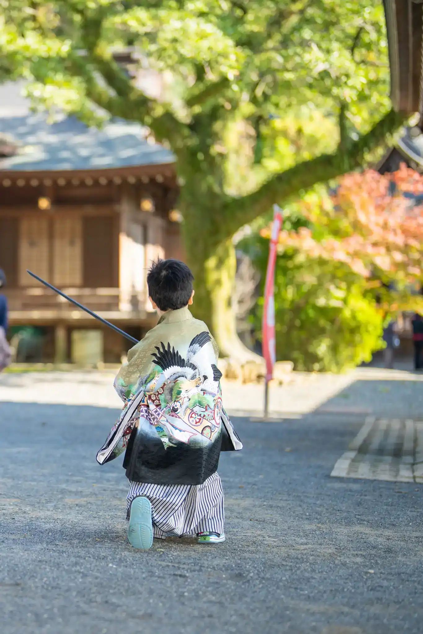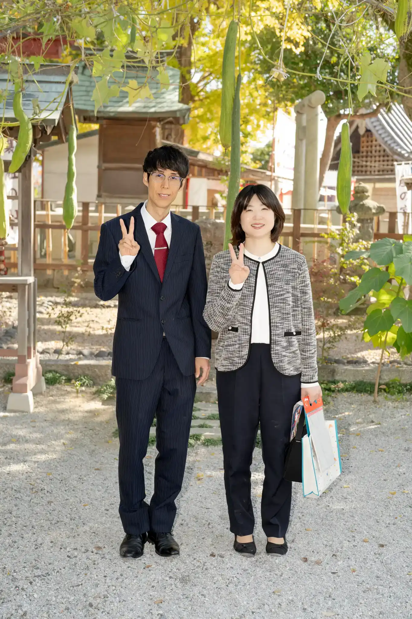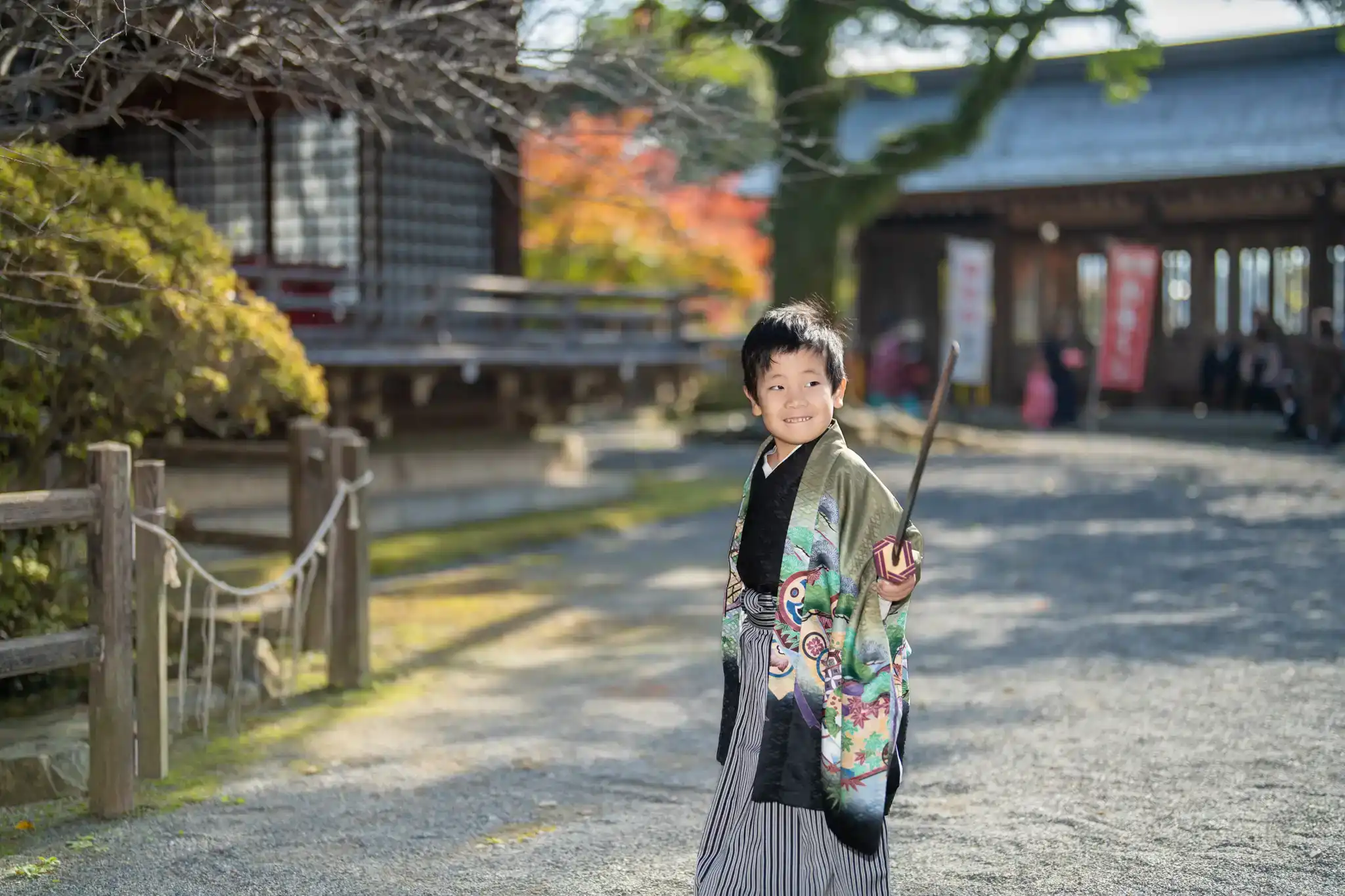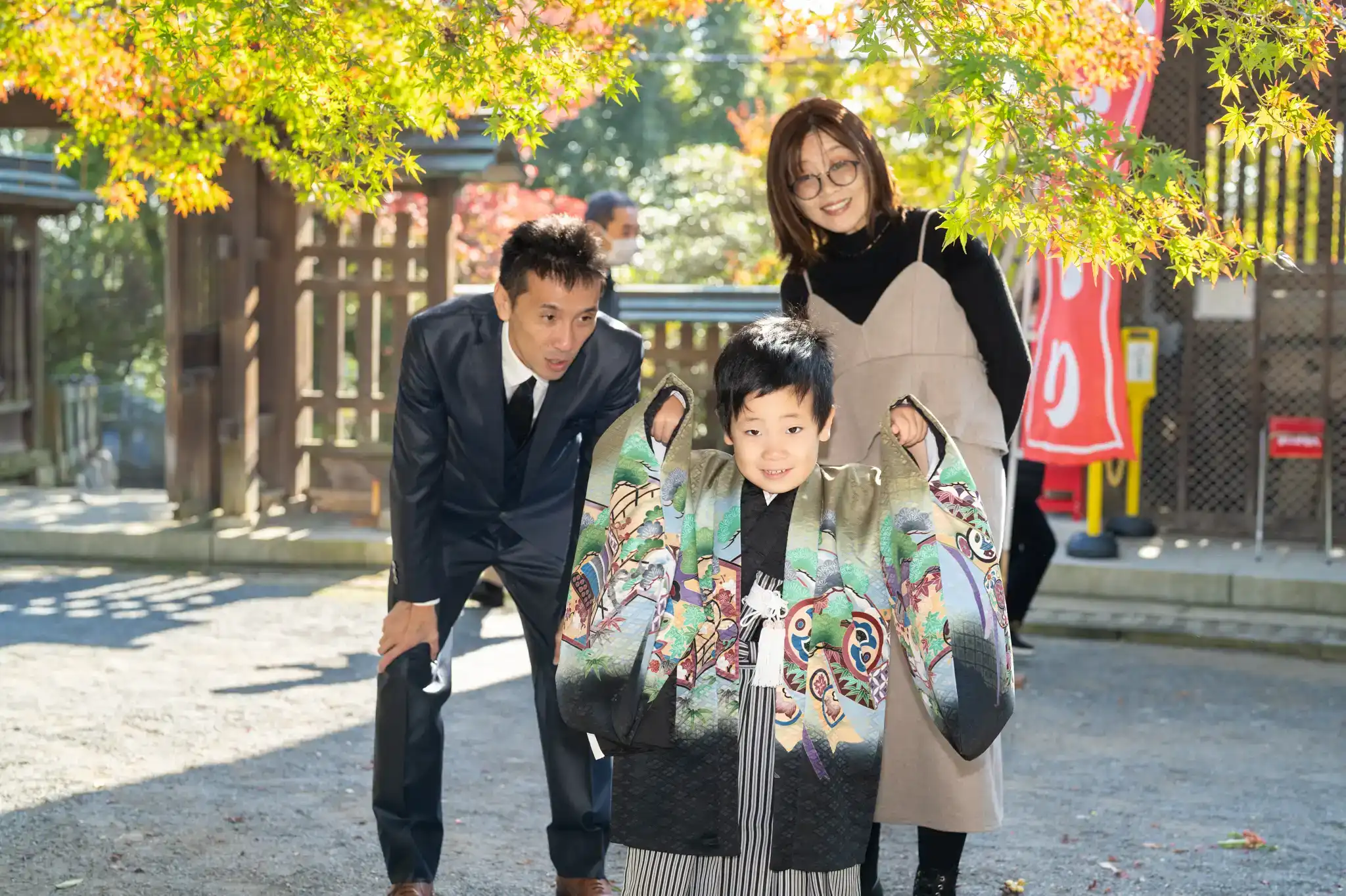 境内の場所によっては紅葉も見られ、秋らしさを感じながらの撮影となりました。