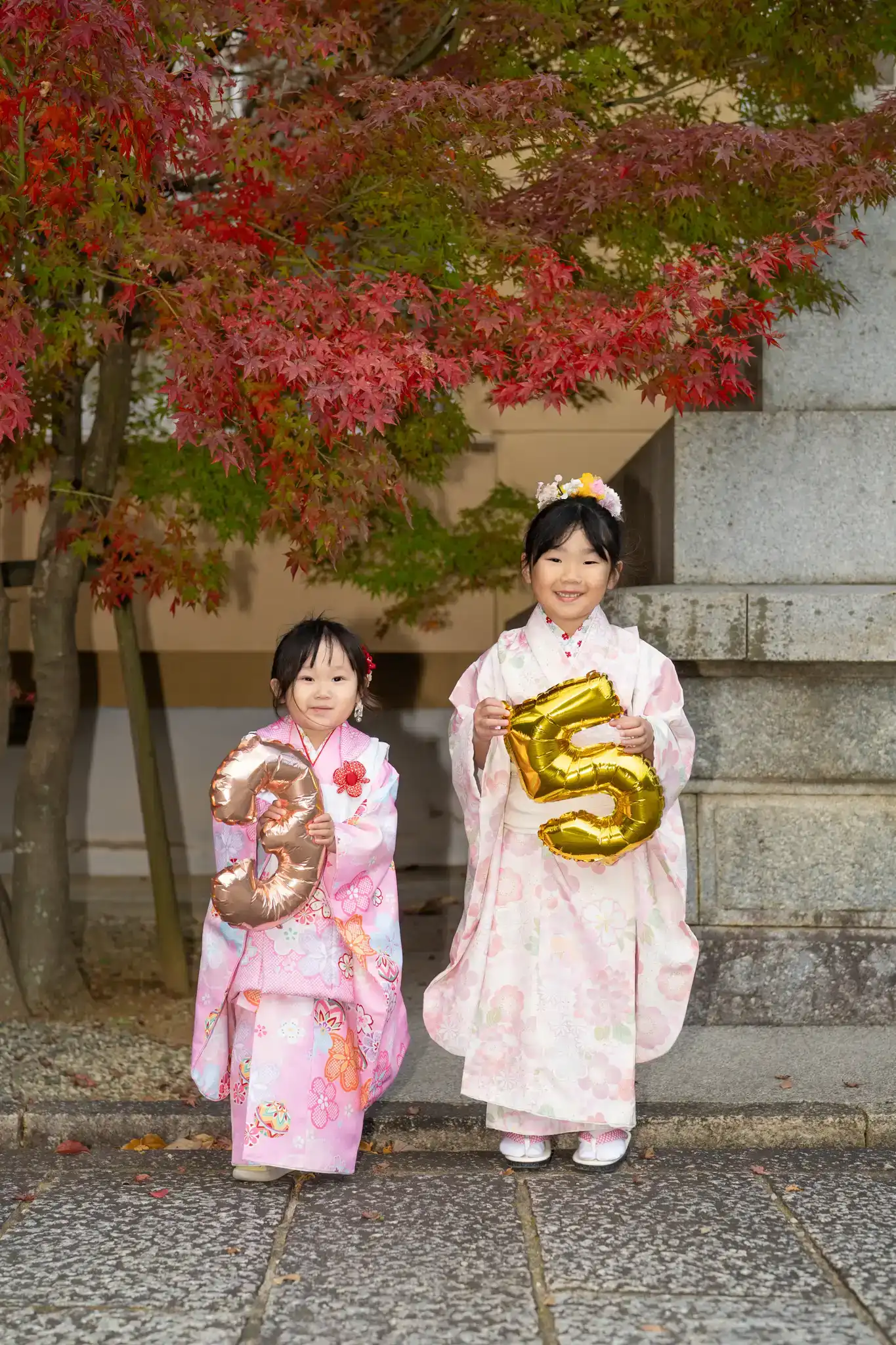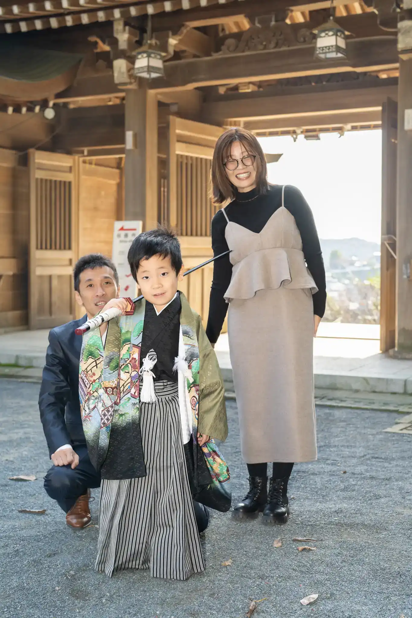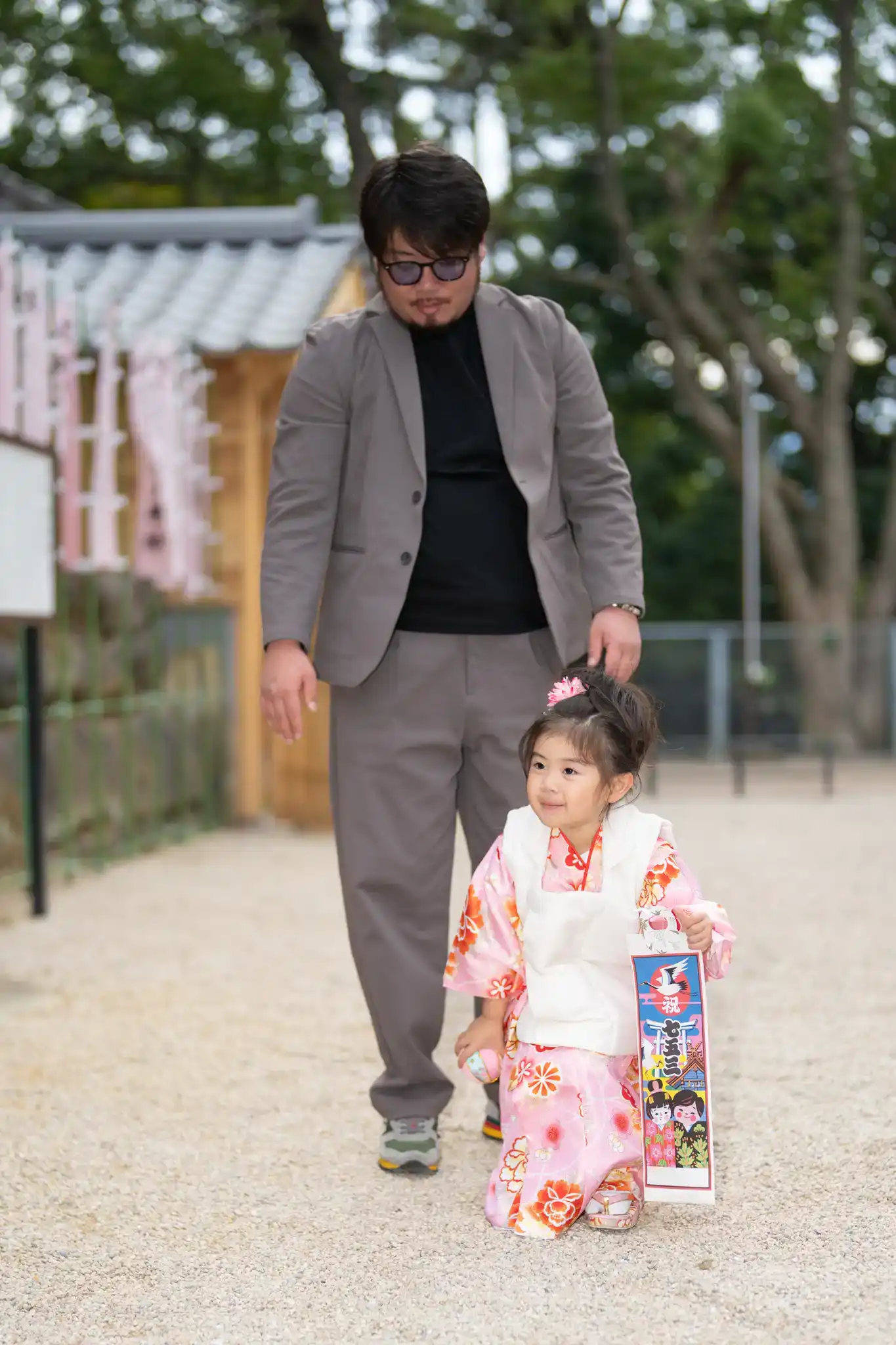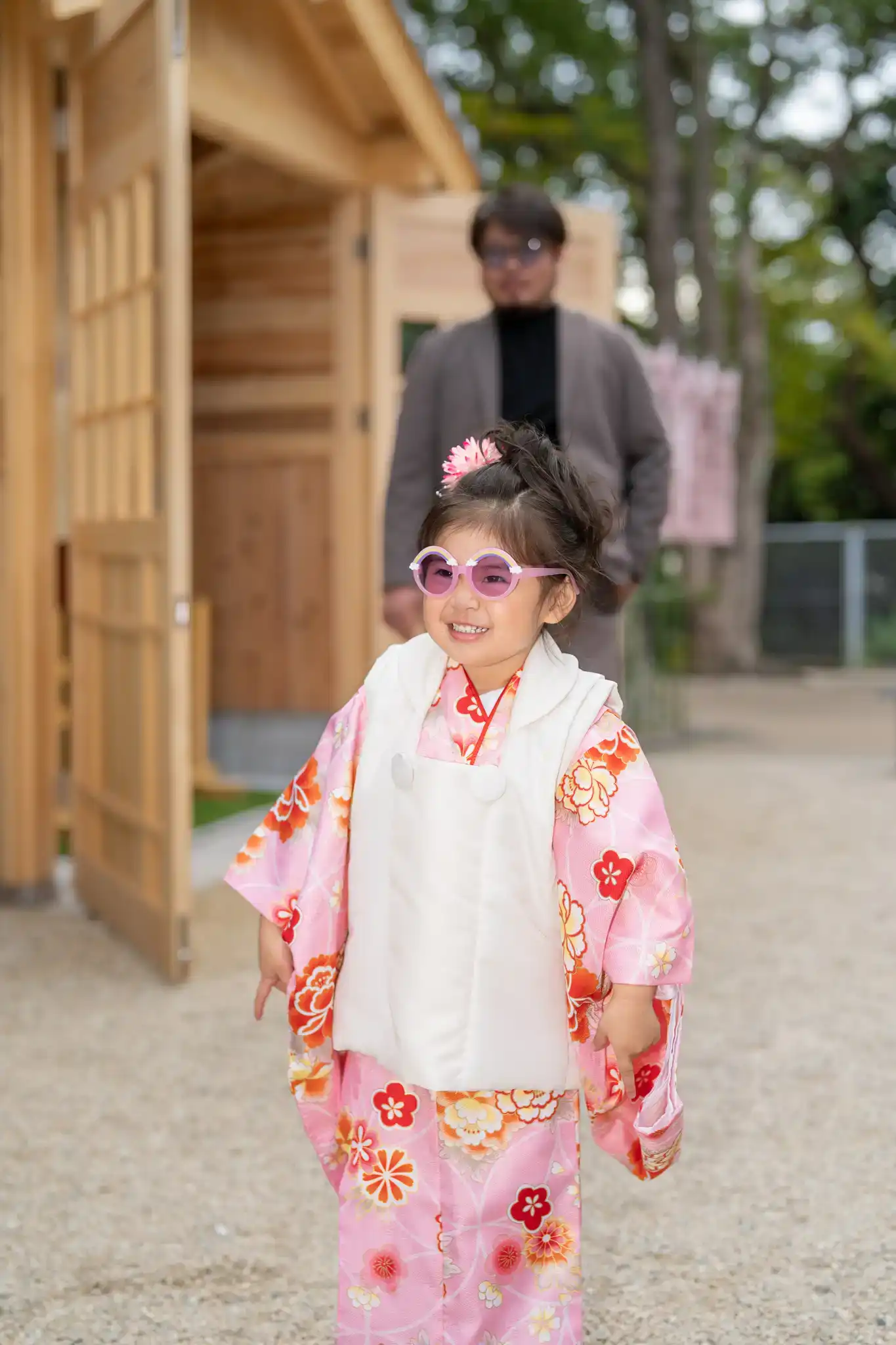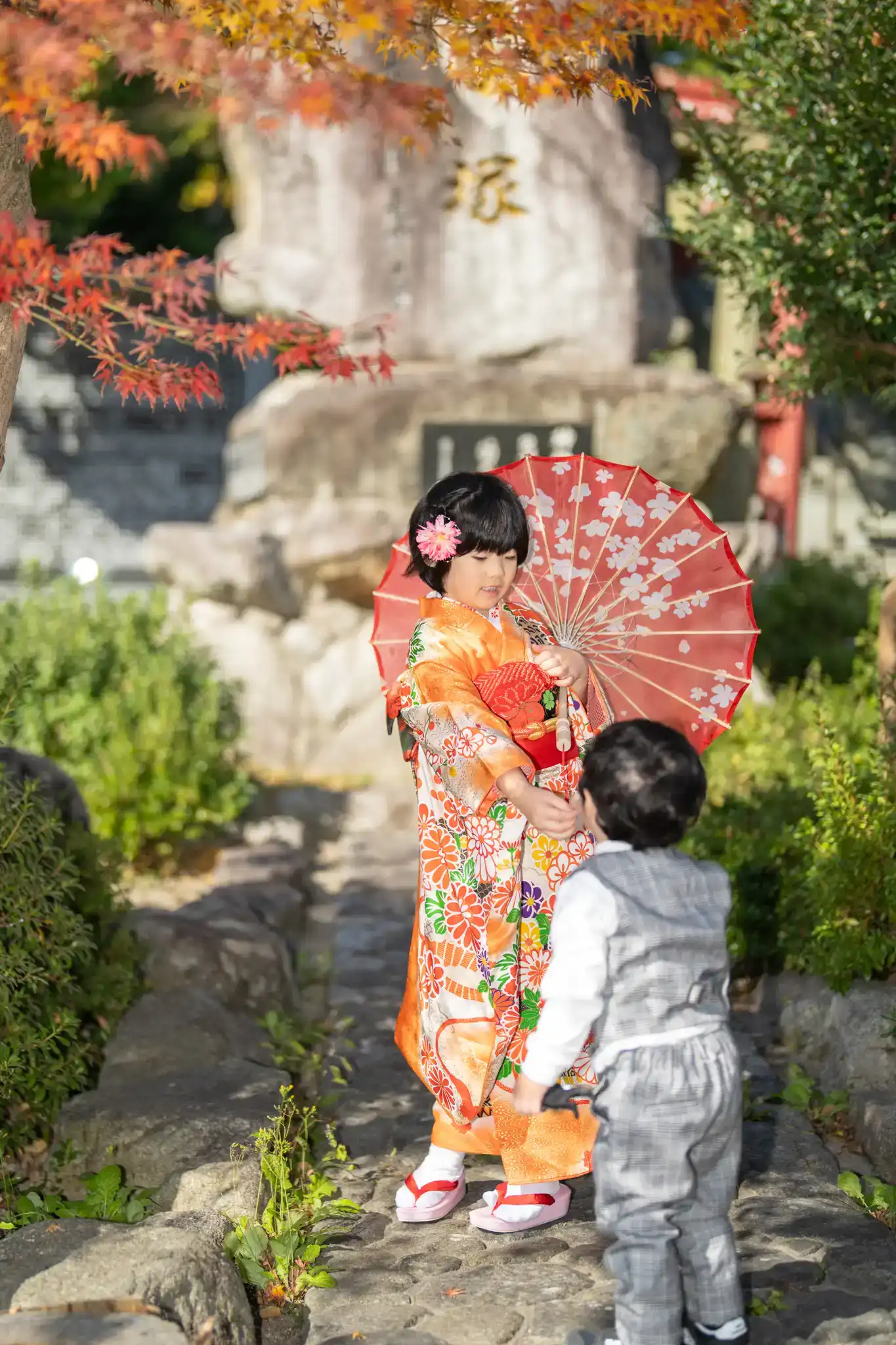 七五三の着物姿を引き立てつつ、並んだときの相性もとても良い装いでした。