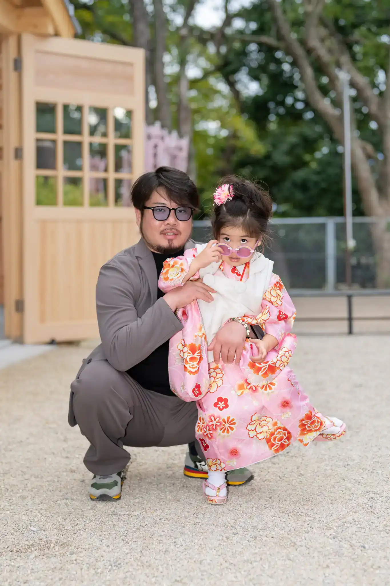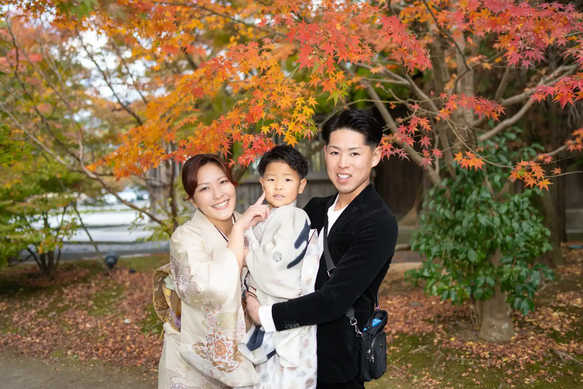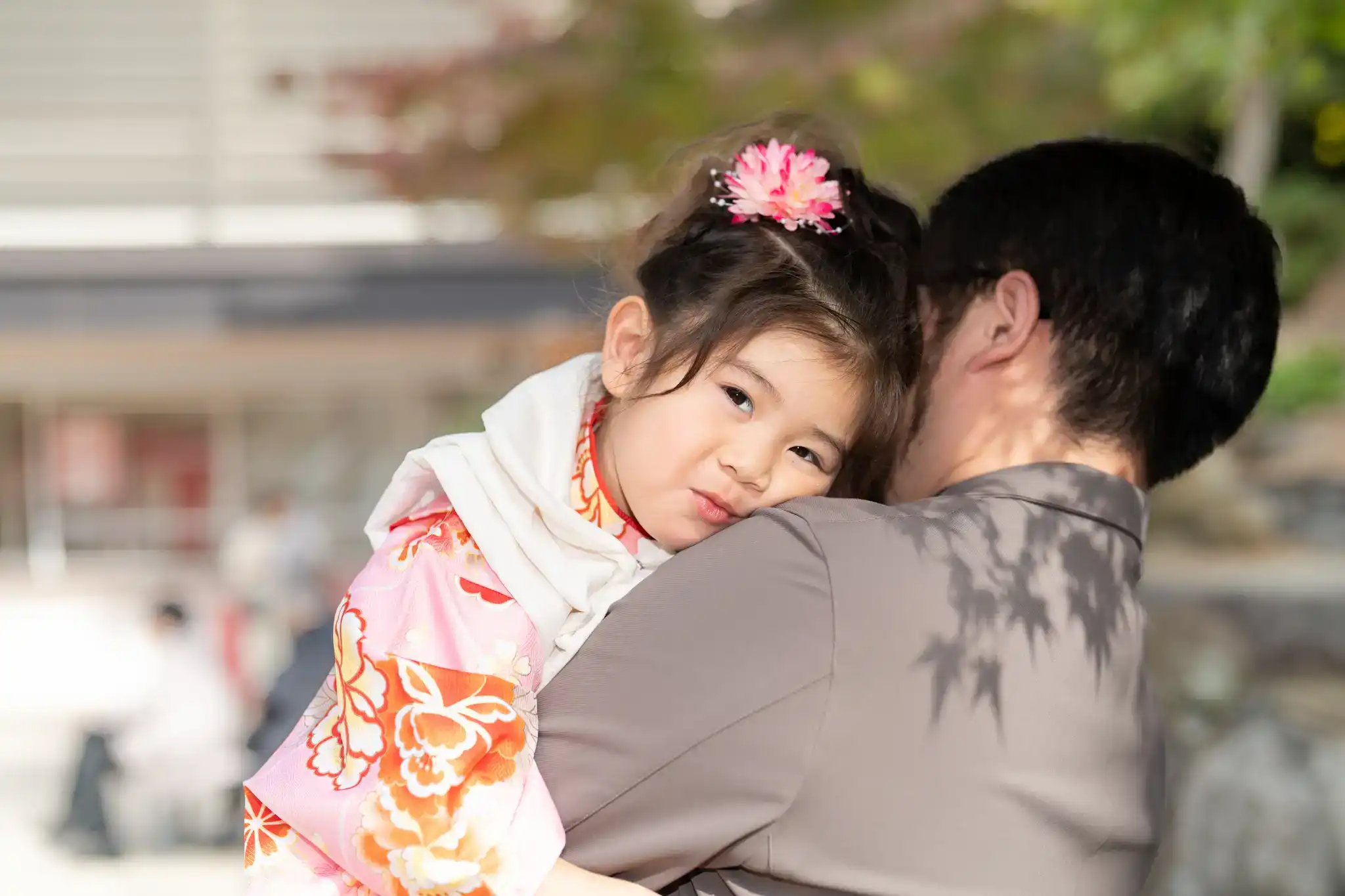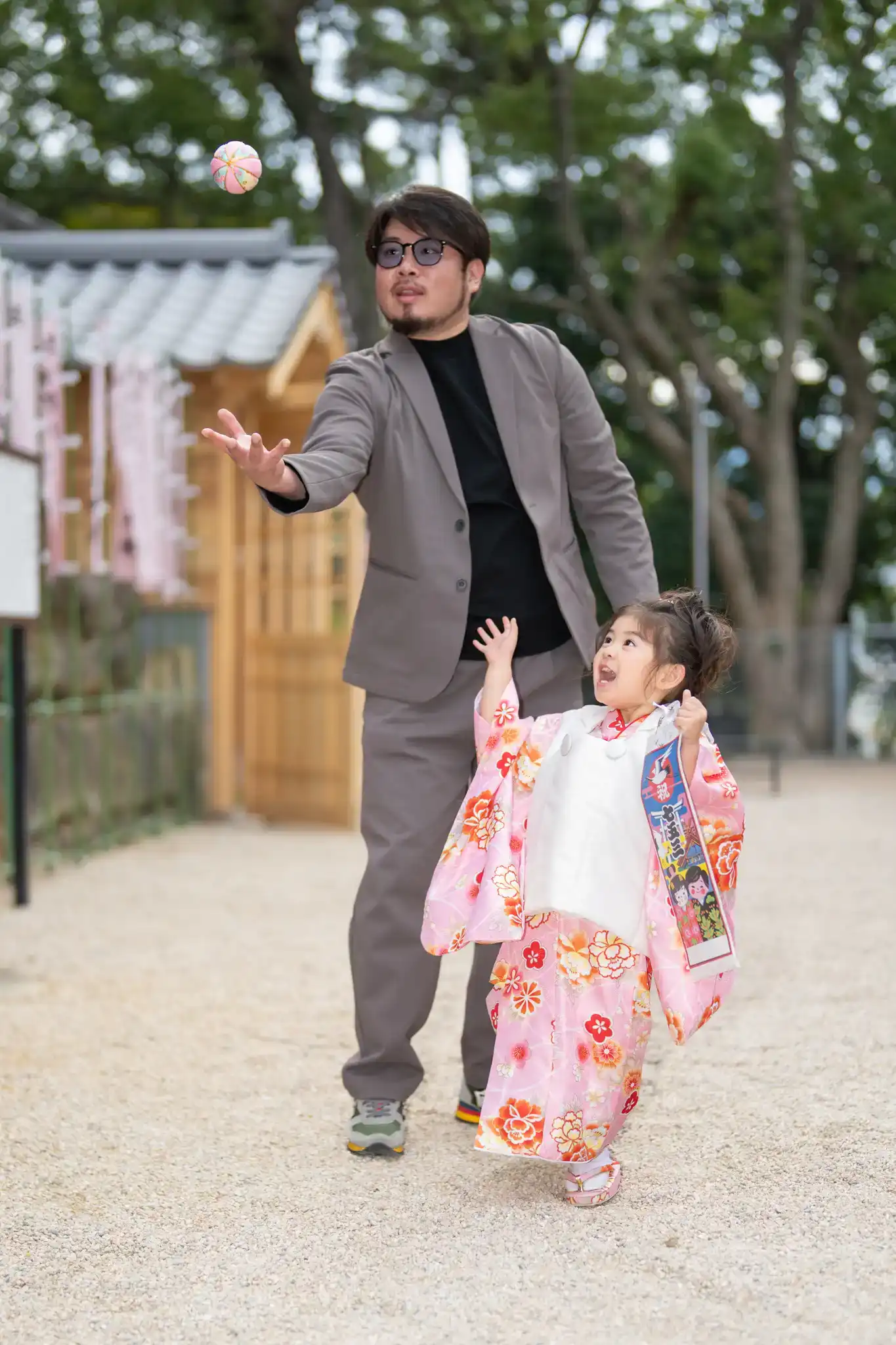 七五三の着物姿を引き立てつつ、並んだときの相性もとても良い装いでした。