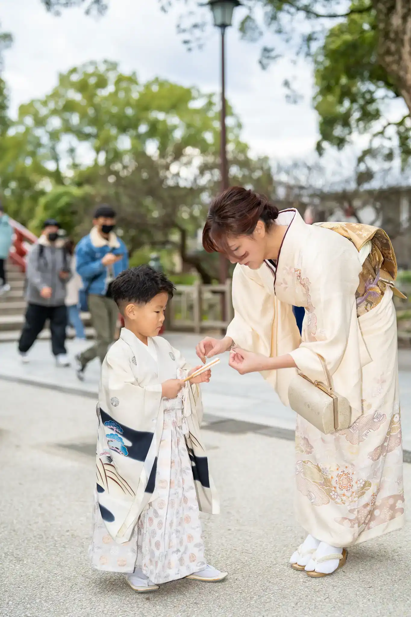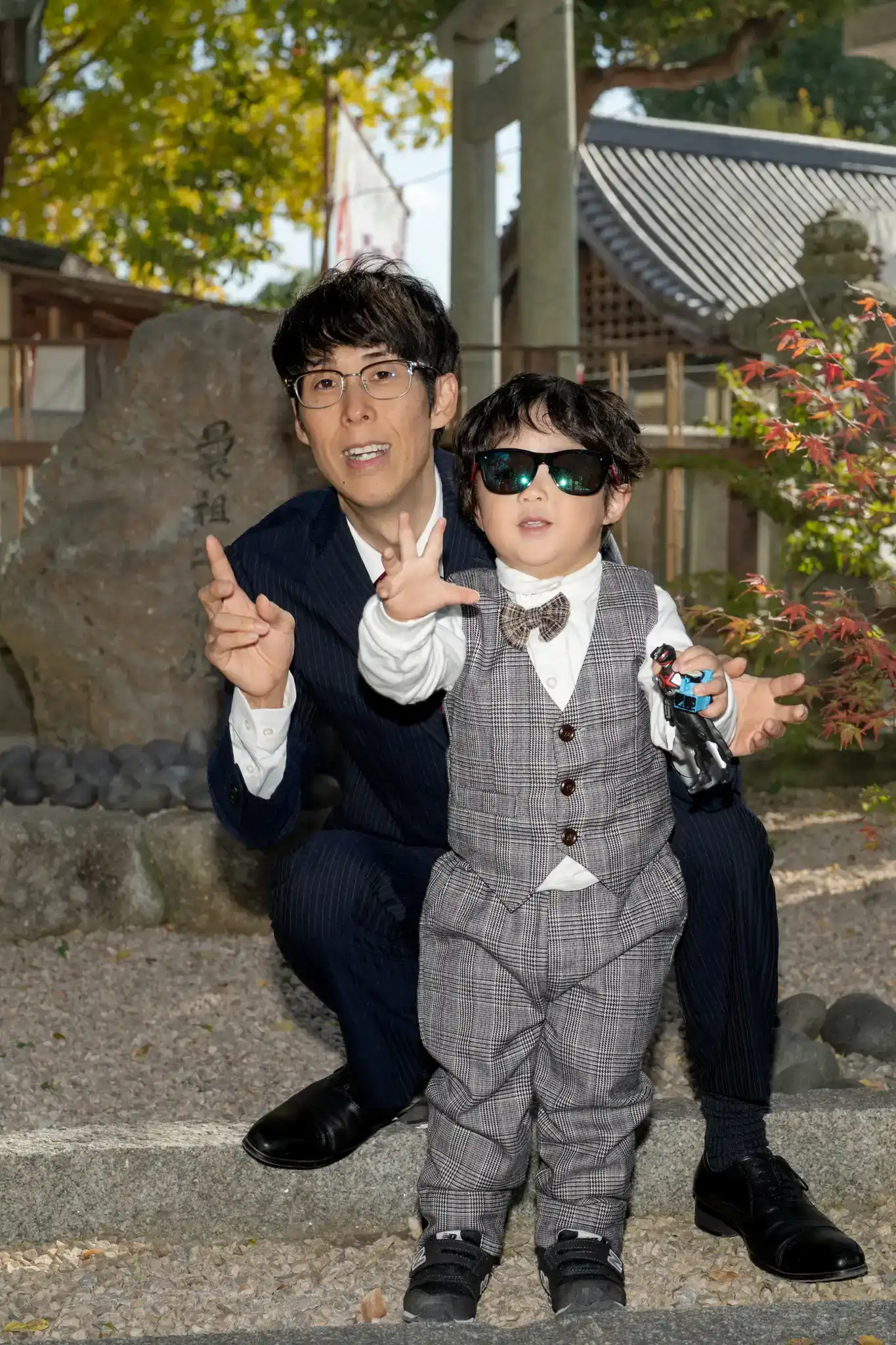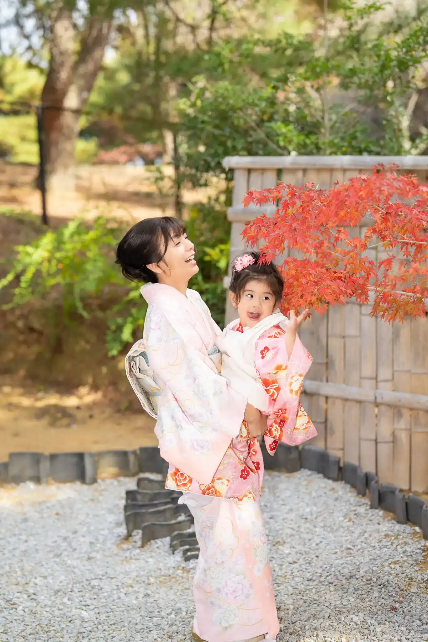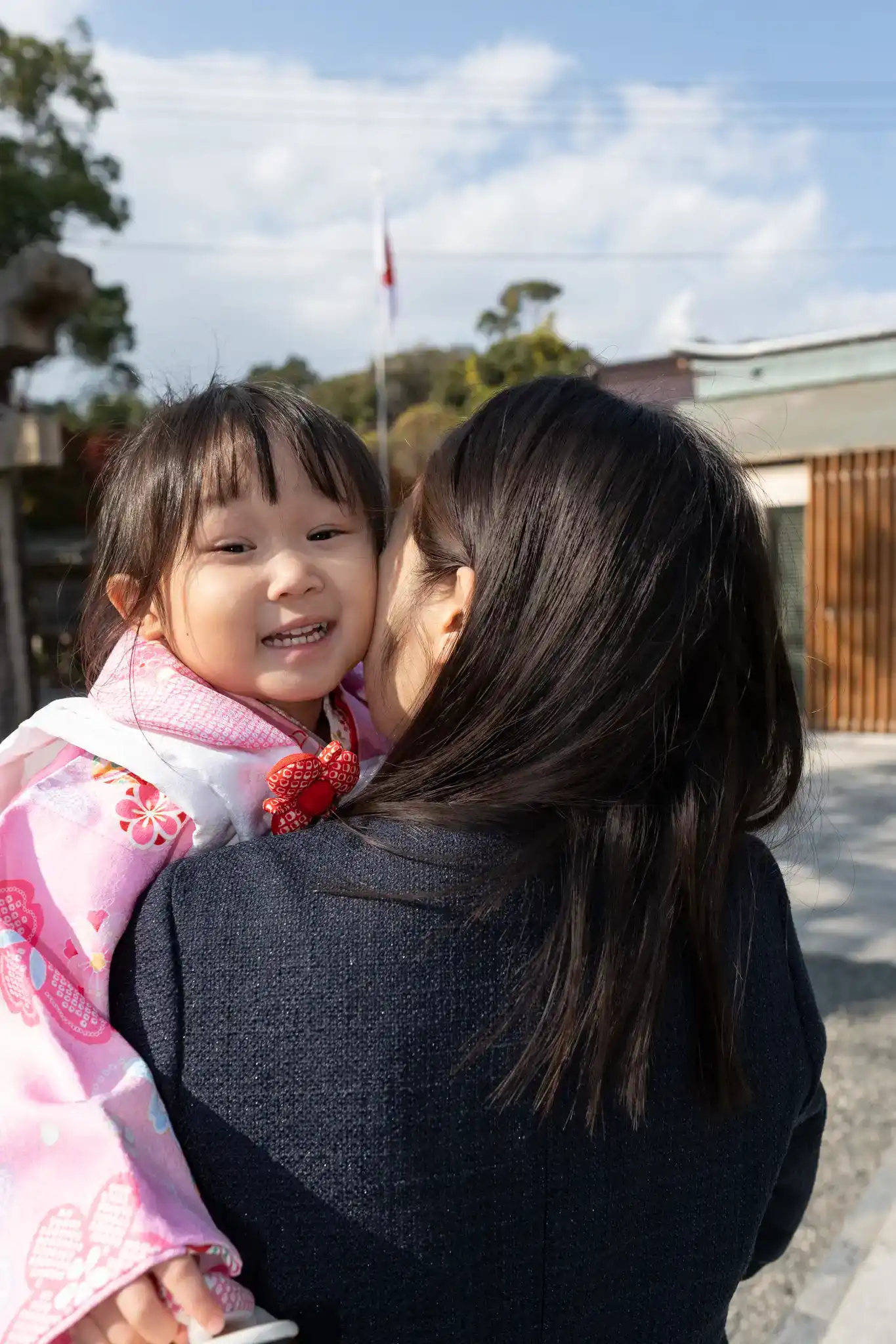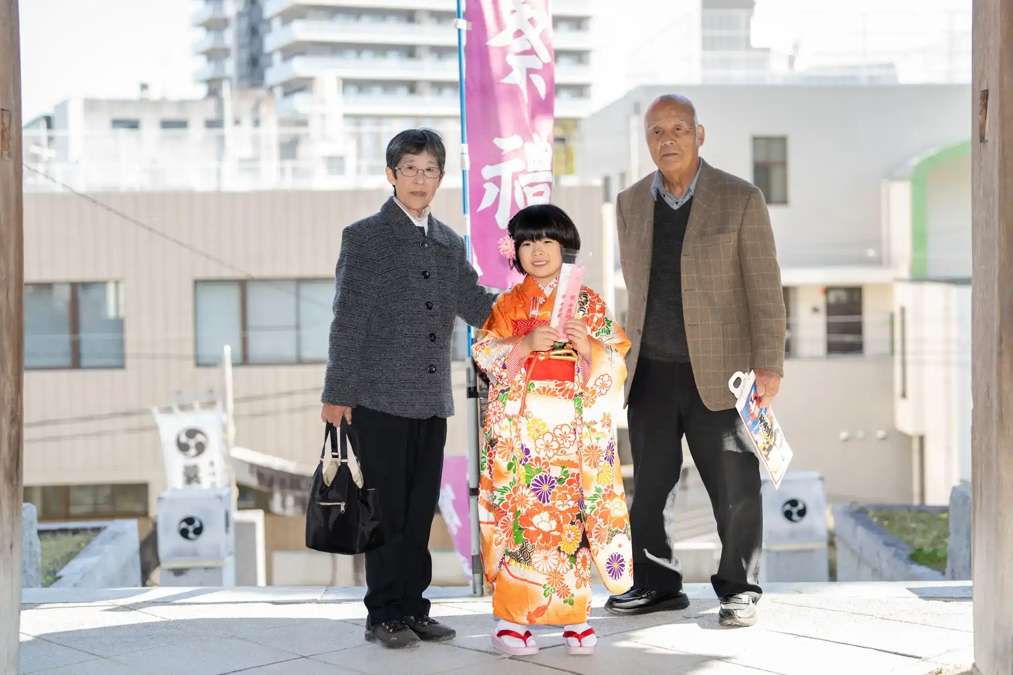七五三の着物姿を引き立てつつ、並んだときの相性もとても良い装いでした。