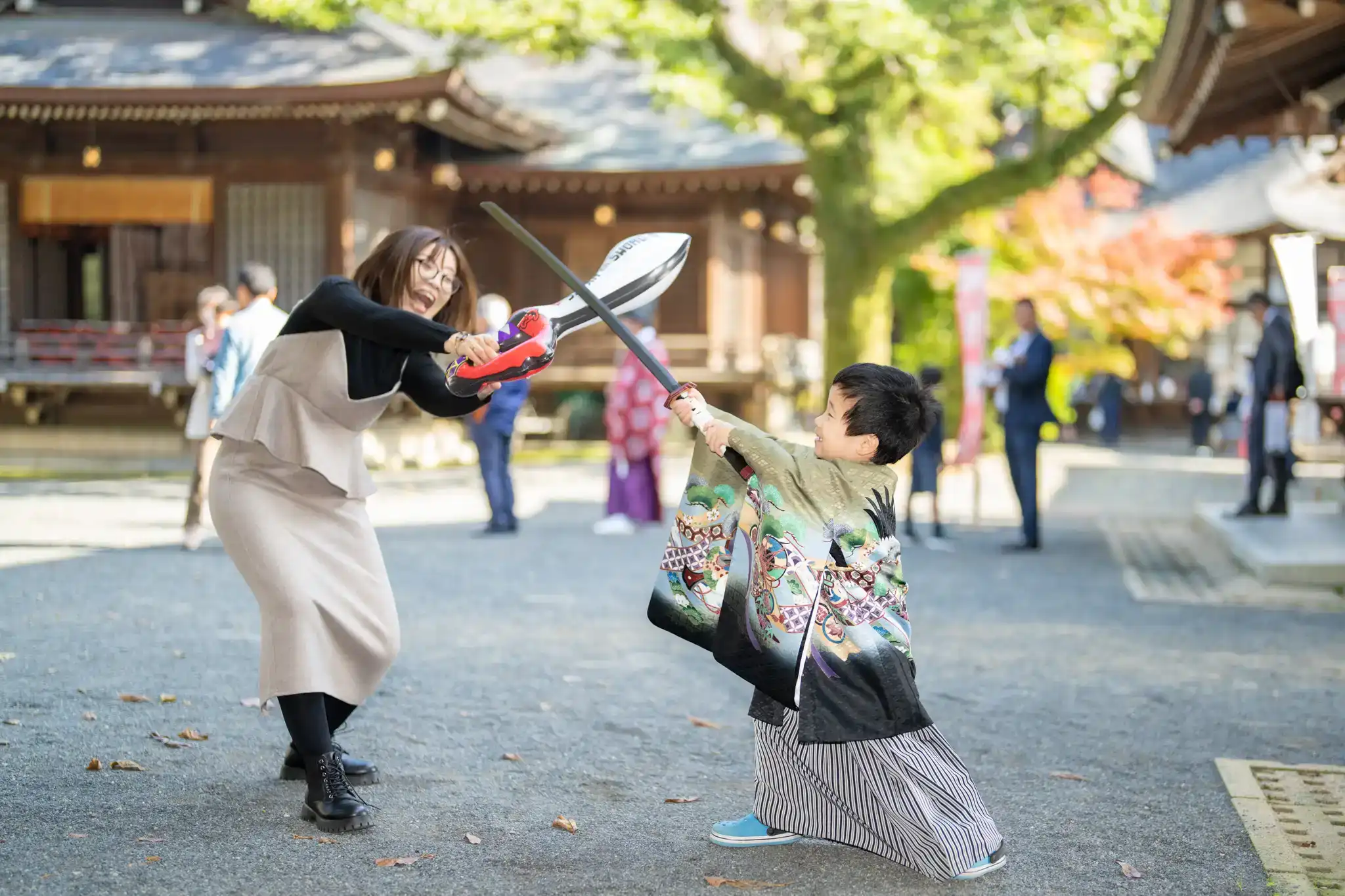 撮影中はとにかくチャンバラが大好きで、家族みんなでカキンコキンと大盛り上がり。
