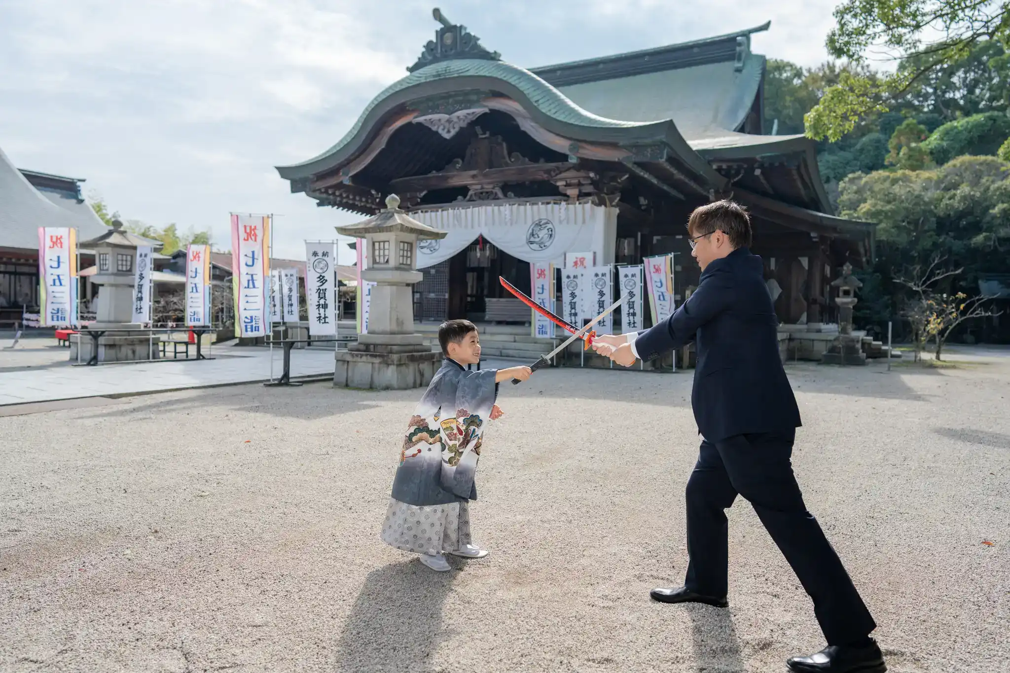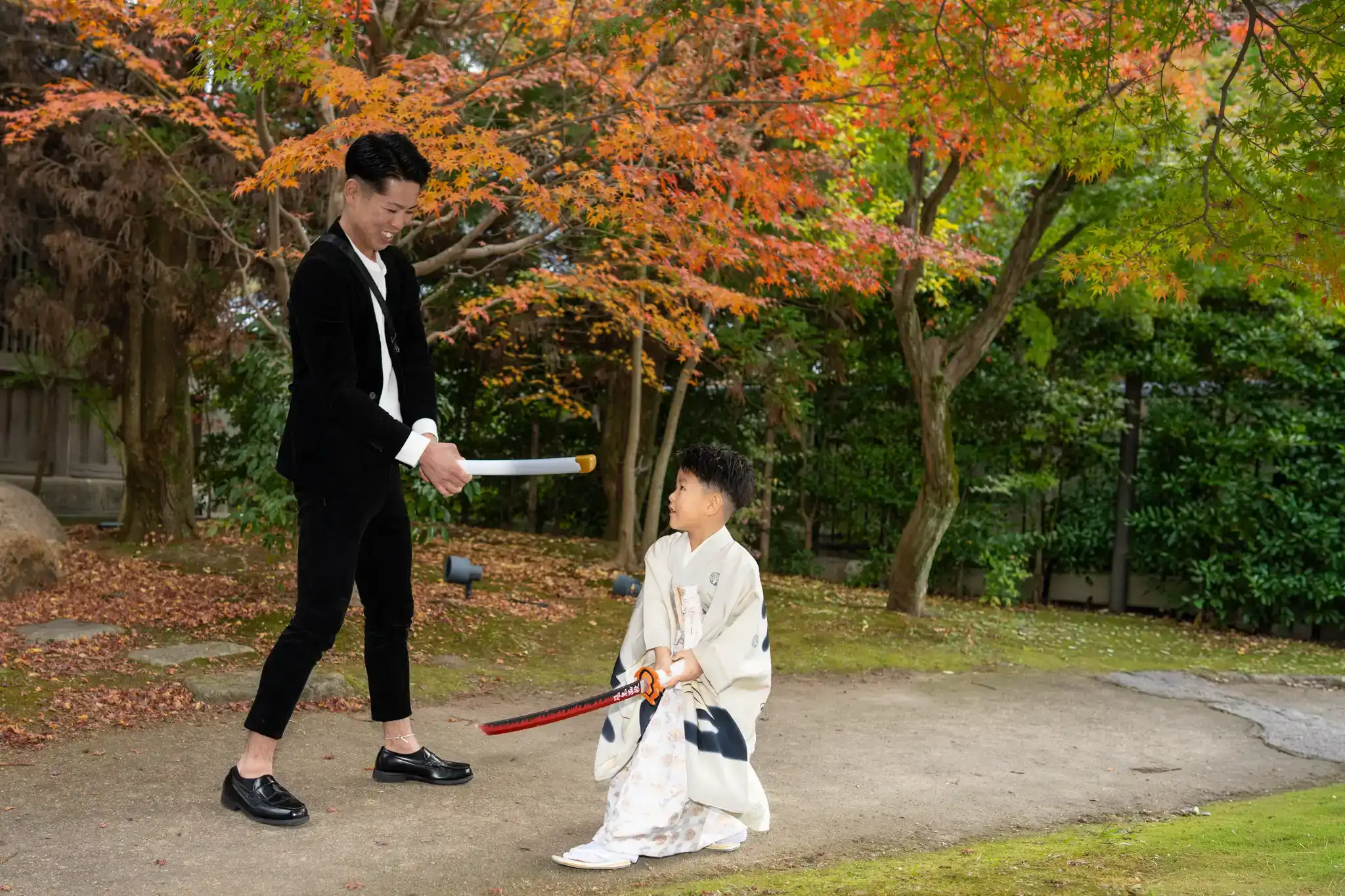 弊社でご用意している剣の小物も気に入ってくれ、楽しそうな表情がたくさん。