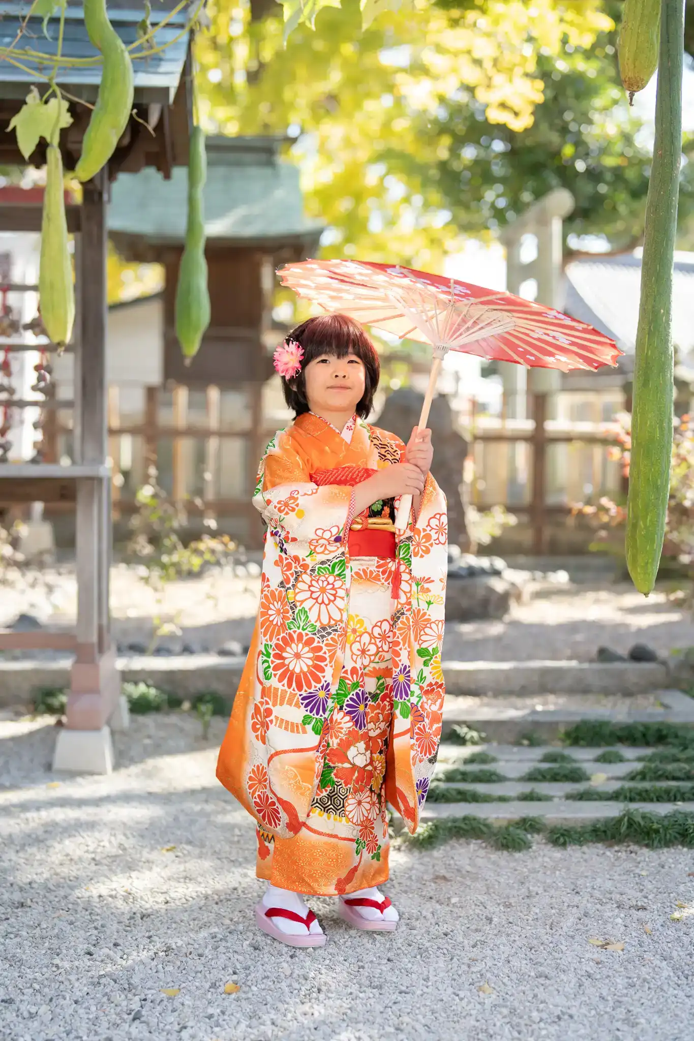何度も訪れている篠崎八幡神社は、今回もやっぱり美しく、和傘の小物もお気に入りに。