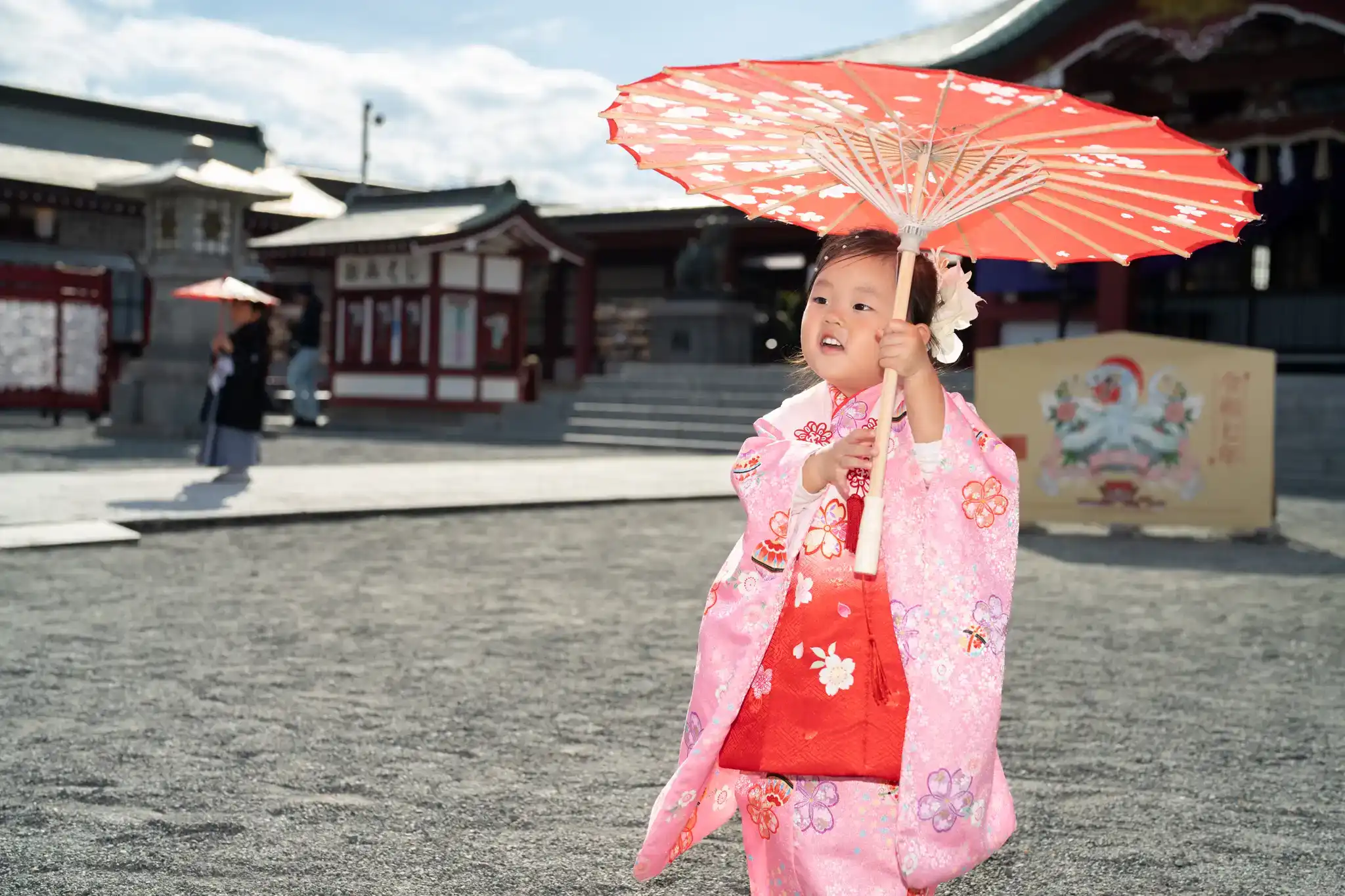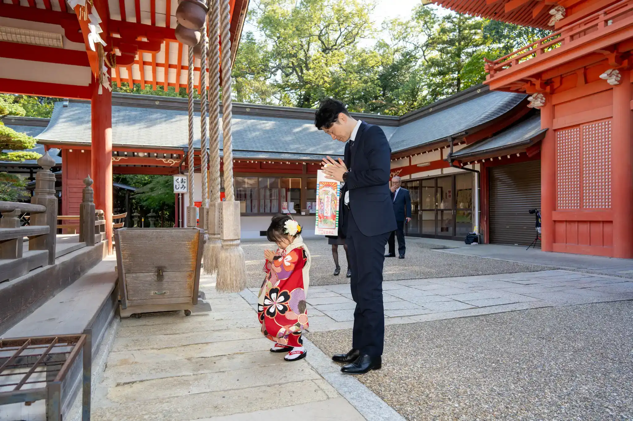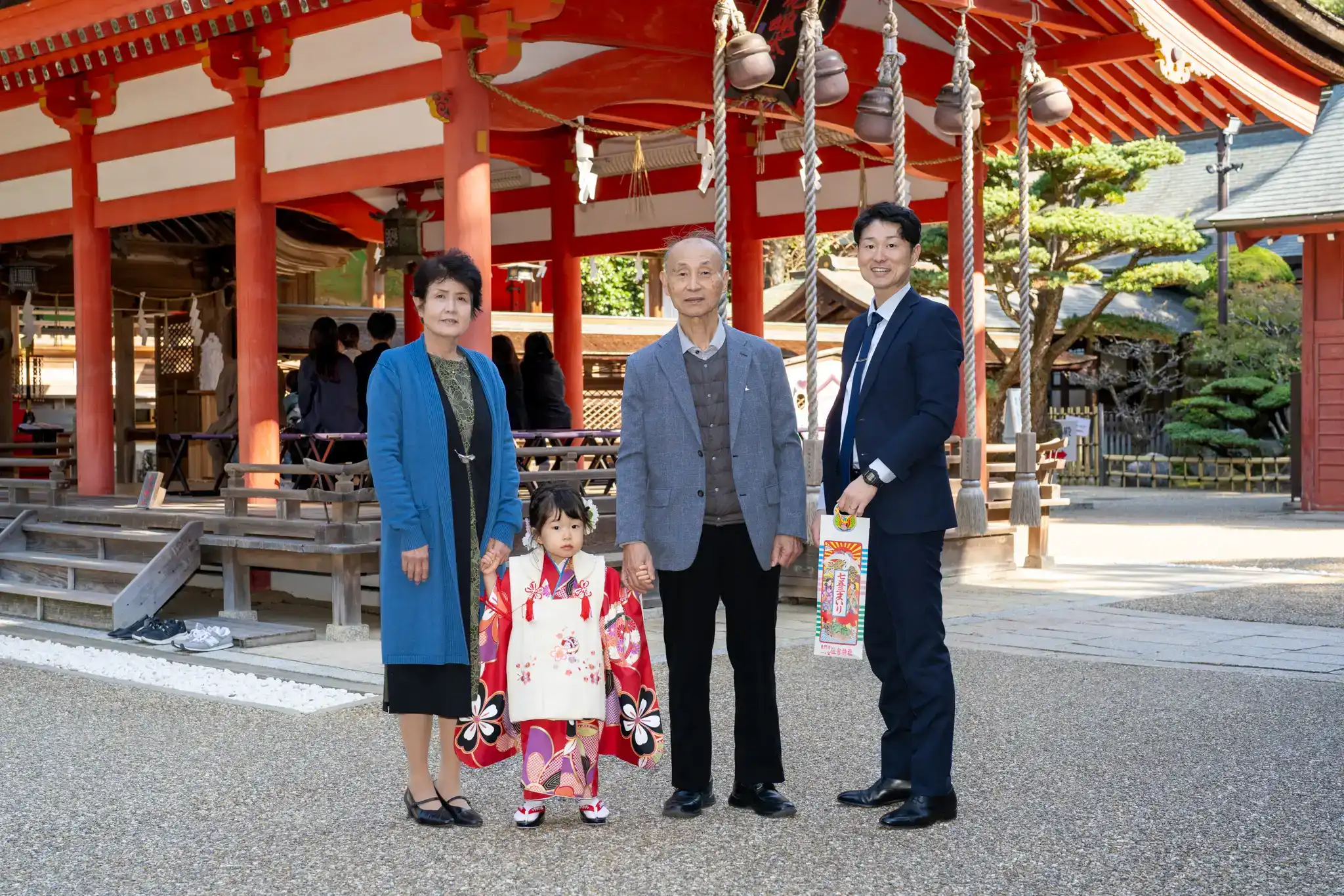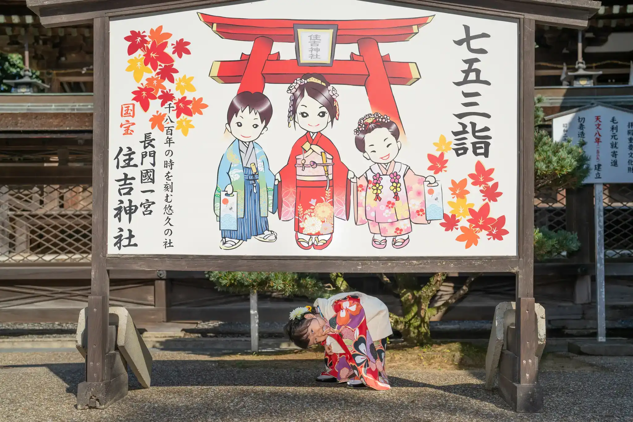 山口県下関市にある住吉神社にて、3歳の女の子の七五三撮影を行いました。