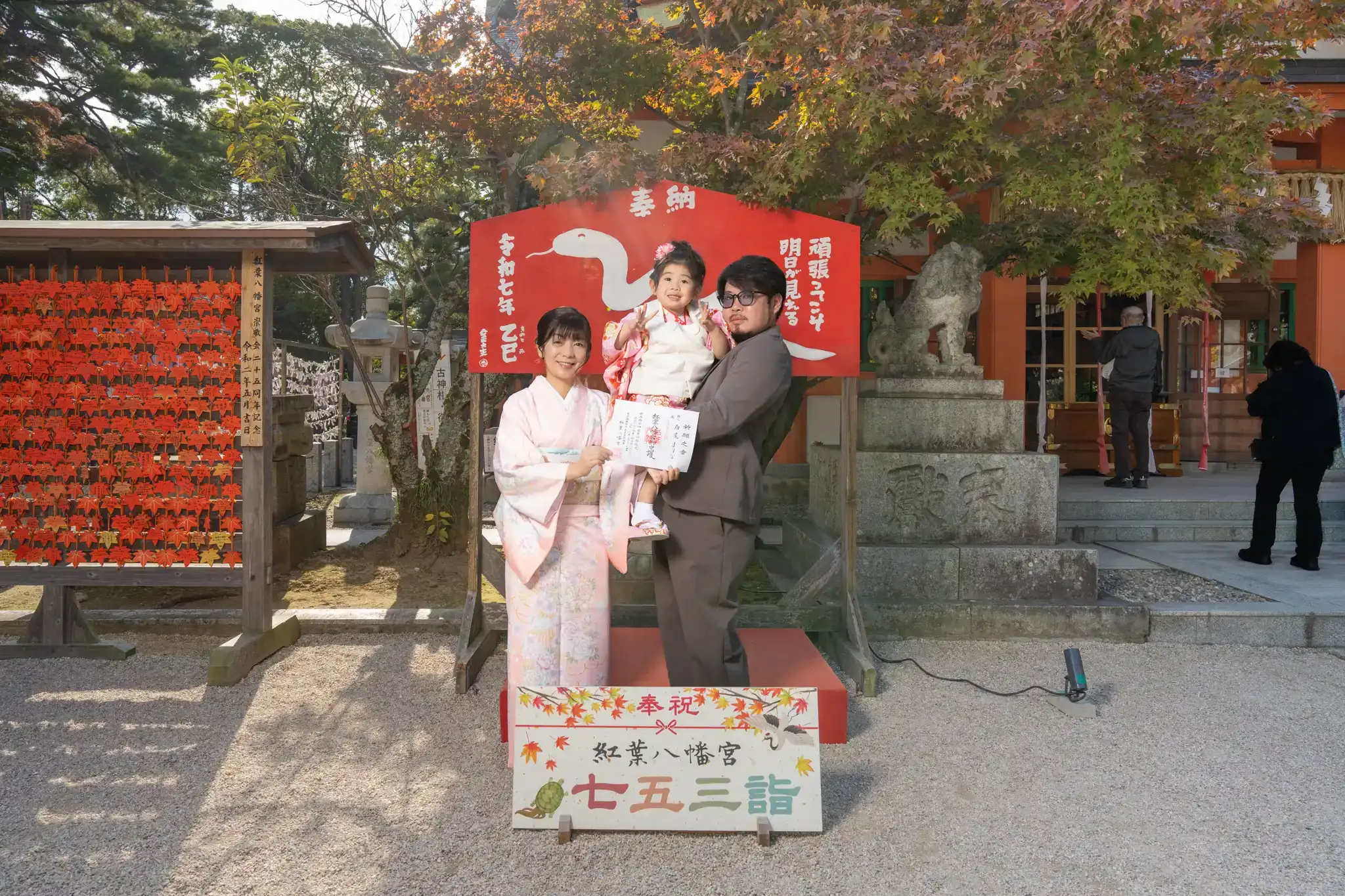 福岡県福岡市早良区にある紅葉八幡宮にて、3歳の女の子の七五三撮影を行いました。