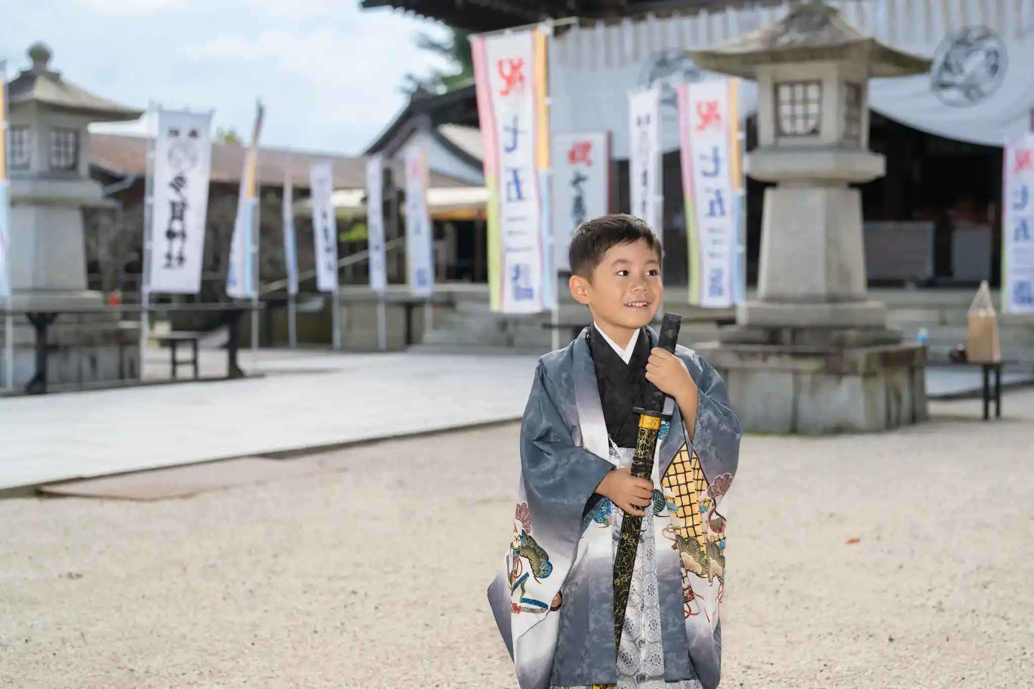 弊社でご用意している剣の小物も気に入ってくれ、楽しそうな表情がたくさん残せました。