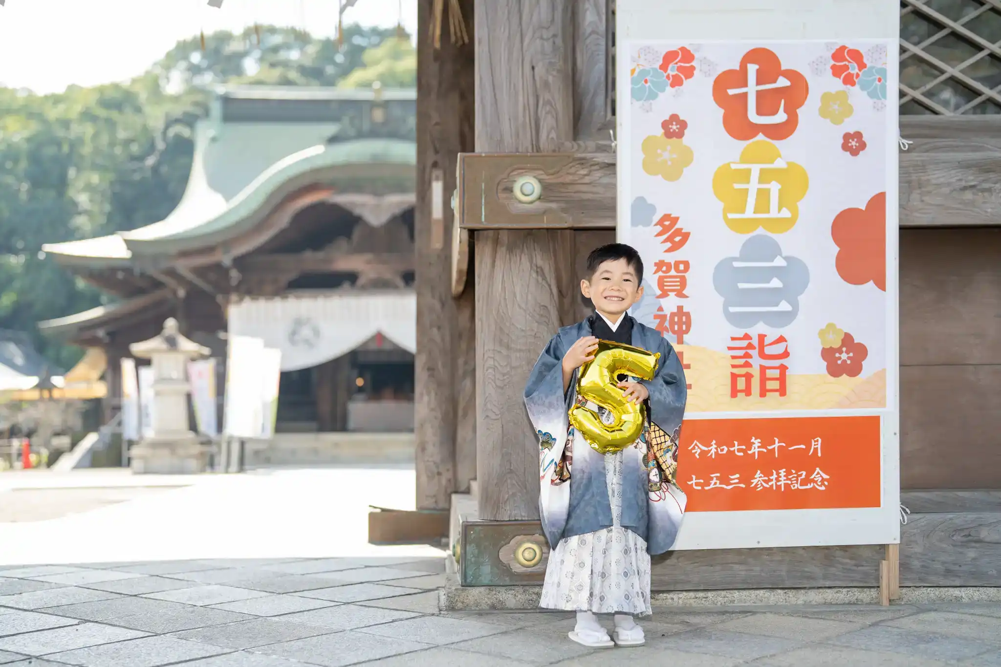 太宰府市の太宰府天満宮にて、5歳の男の子の七五三撮影を行いました。
