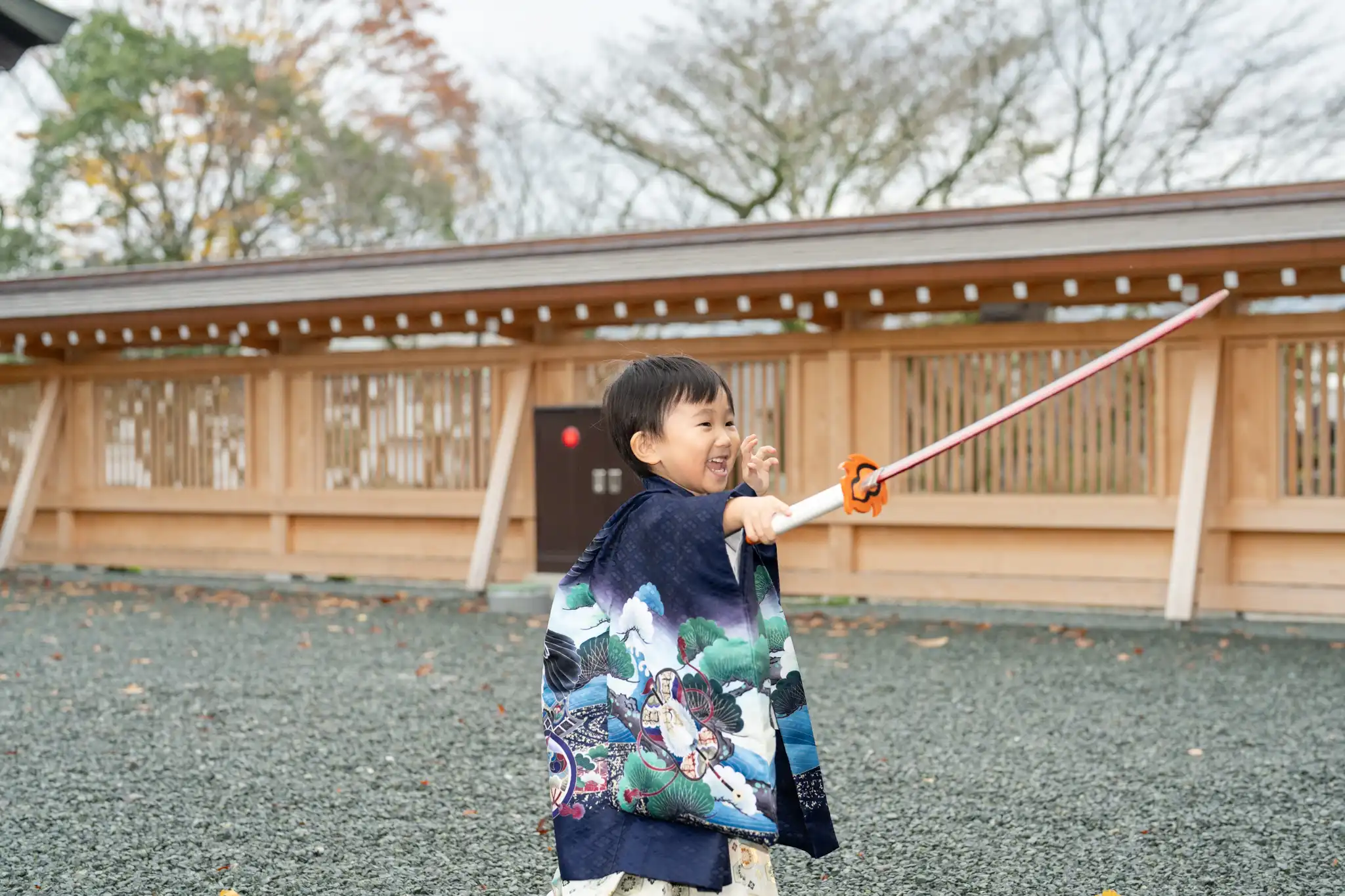 弊社でご用意している剣の小物も気に入ってくれ、楽しそうな表情がたくさん。