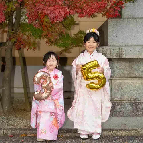 七五三の着物姿を引き立てつつ、並んだときの相性もとても良い装いでした。